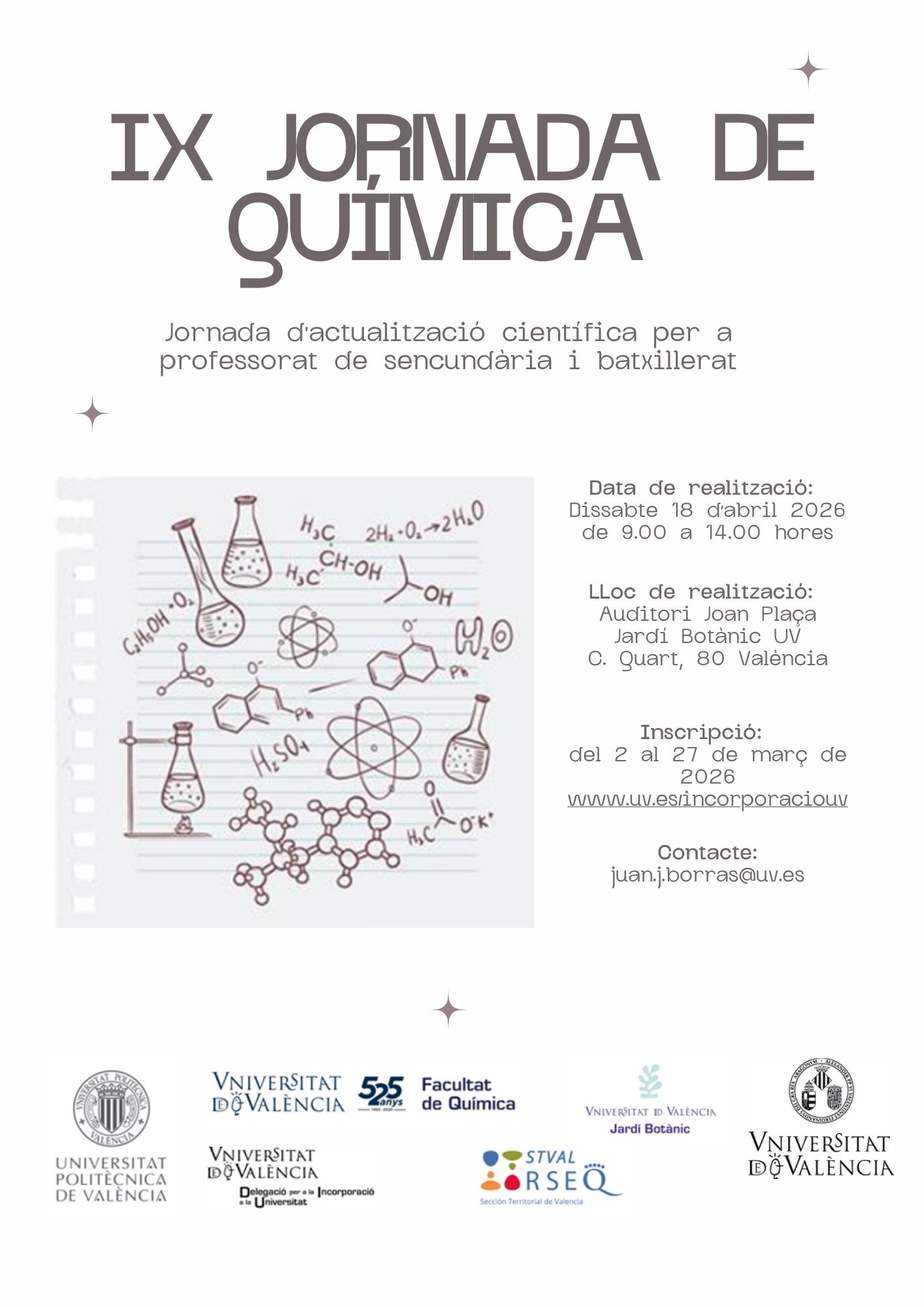 IX JORNADA DE QUÍMICA PER AL PROFESSORAT DE SENCUNDÀRIA