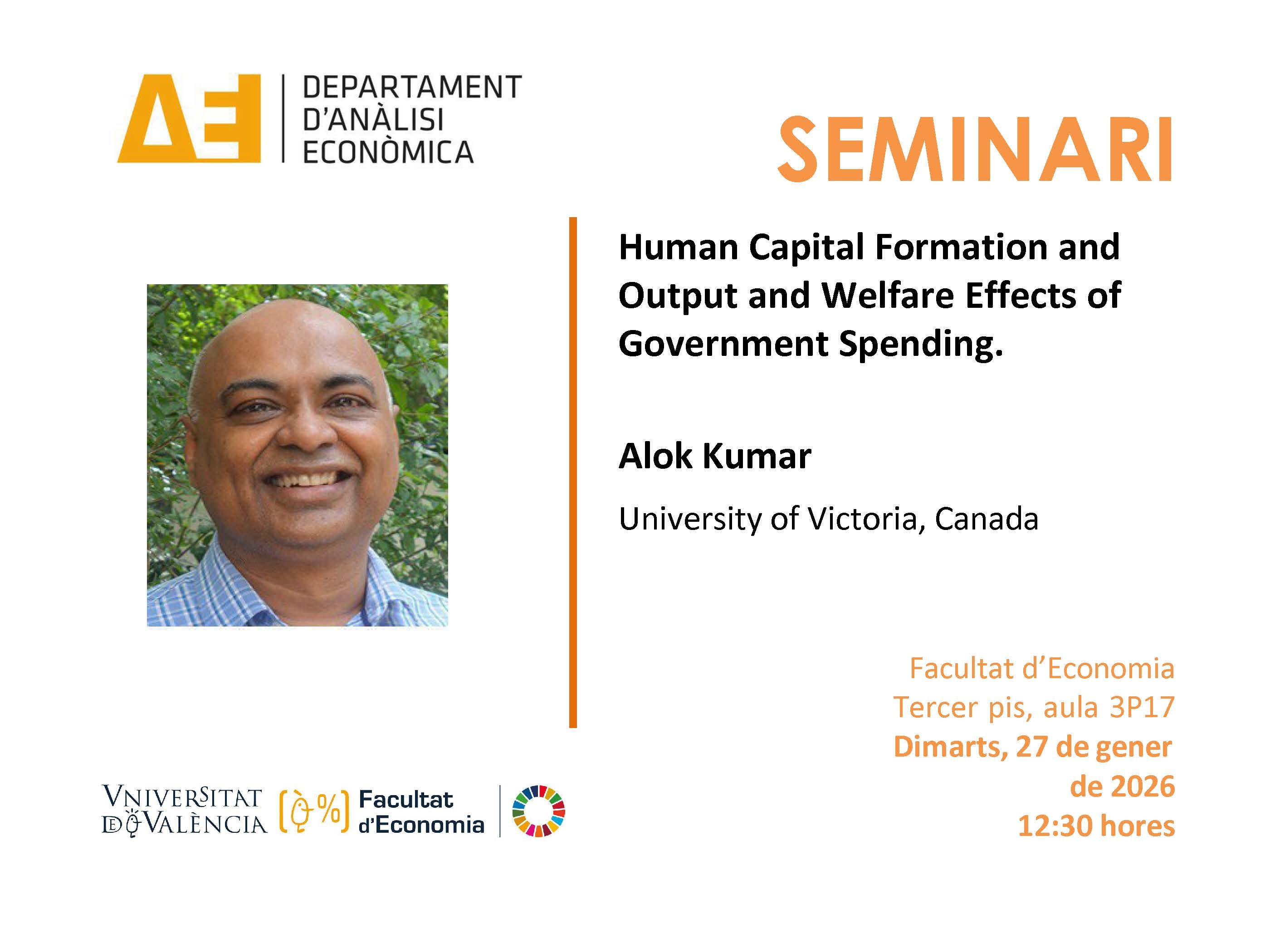 Seminari a càrrec de Jesús Lahera Forteza, Universitat Complutense de Madrid i Fundació d'Estudis de Economia Aplicada (FEDEA). Facultat d' Economia, tercer pis, aula 3P17. Dimarts, 3 de febrer de 2026, a les 12:30h