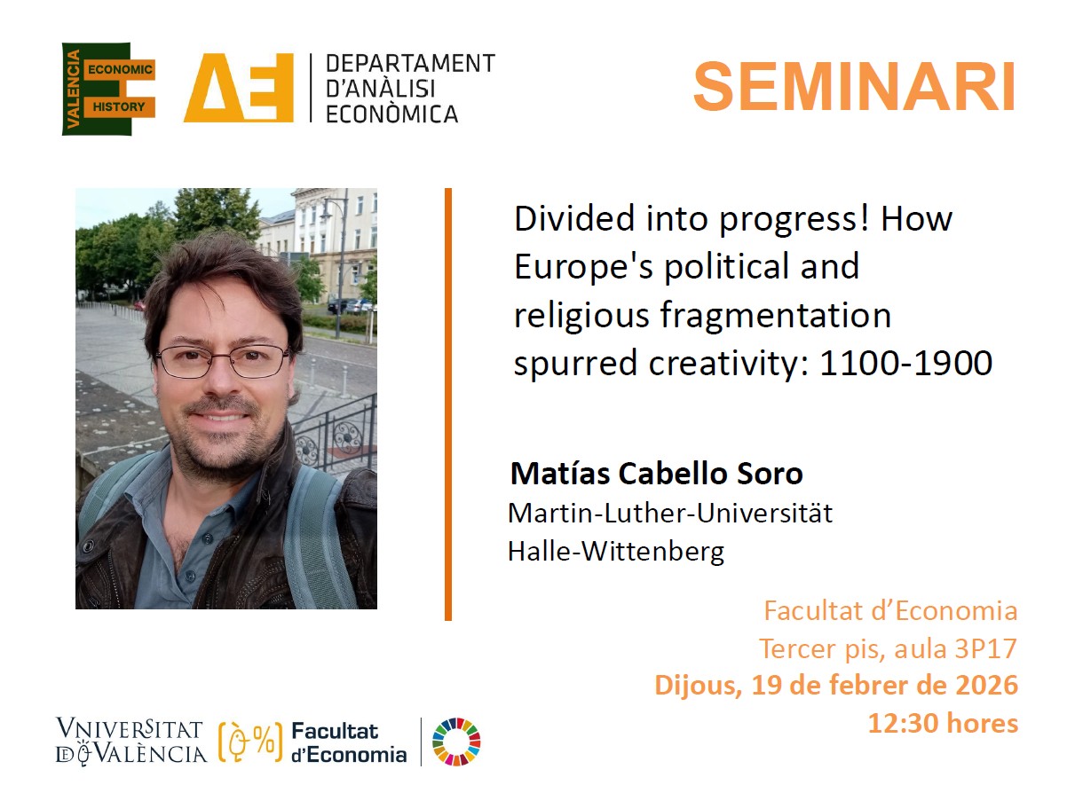 Seminario a cargo de Matías Cabello Soro, Universidad Martín Lutero de Halle-Wittenberg. Facultad de Economía, tercer piso, sala 3P17. Jueves, 19 de febrero de 2026, a las 12:30.