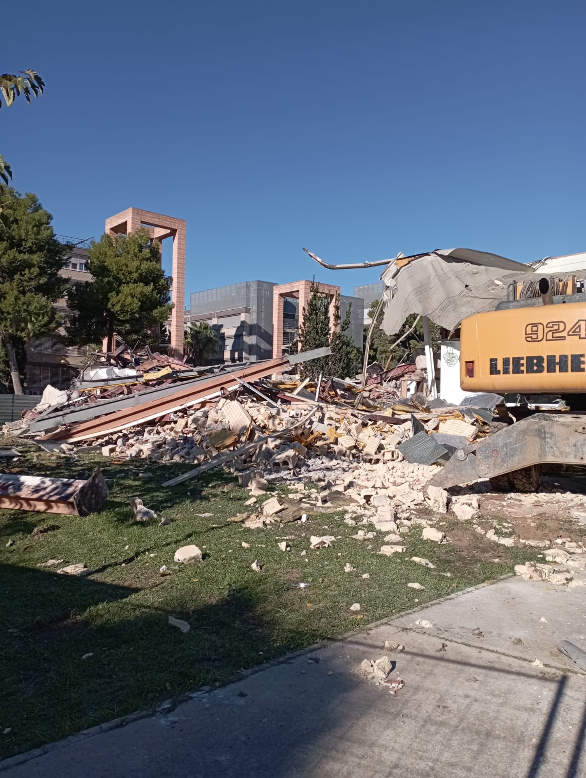 El pasado 20 de noviembre los usuarios del Campus de Burjassot pudieron contemplar el inicio de la demolición del viejo edificio Joaquín Catalá, que últimamente albergaba los gabinetes de montaje del Grado en Óptica y Optometría, así como una sala en la que se impartieron durante muchos años clases del Máster en Optometría Avanzada y Ciencias de la Visión, y que actualmente se dedicaba a sala de estudio del alumnado.
