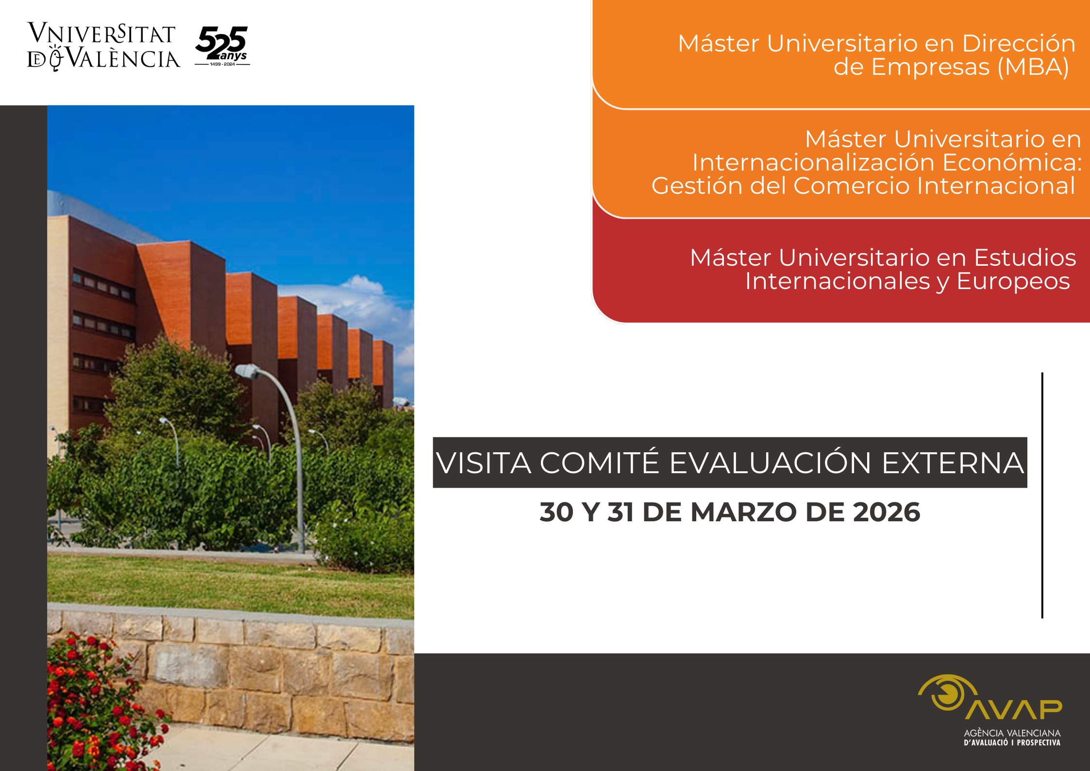 Los días 30 y 31 de marzo de 2026 tendrá lugar la reacreditación de los siguientes títulos de la Facultat de Dret: