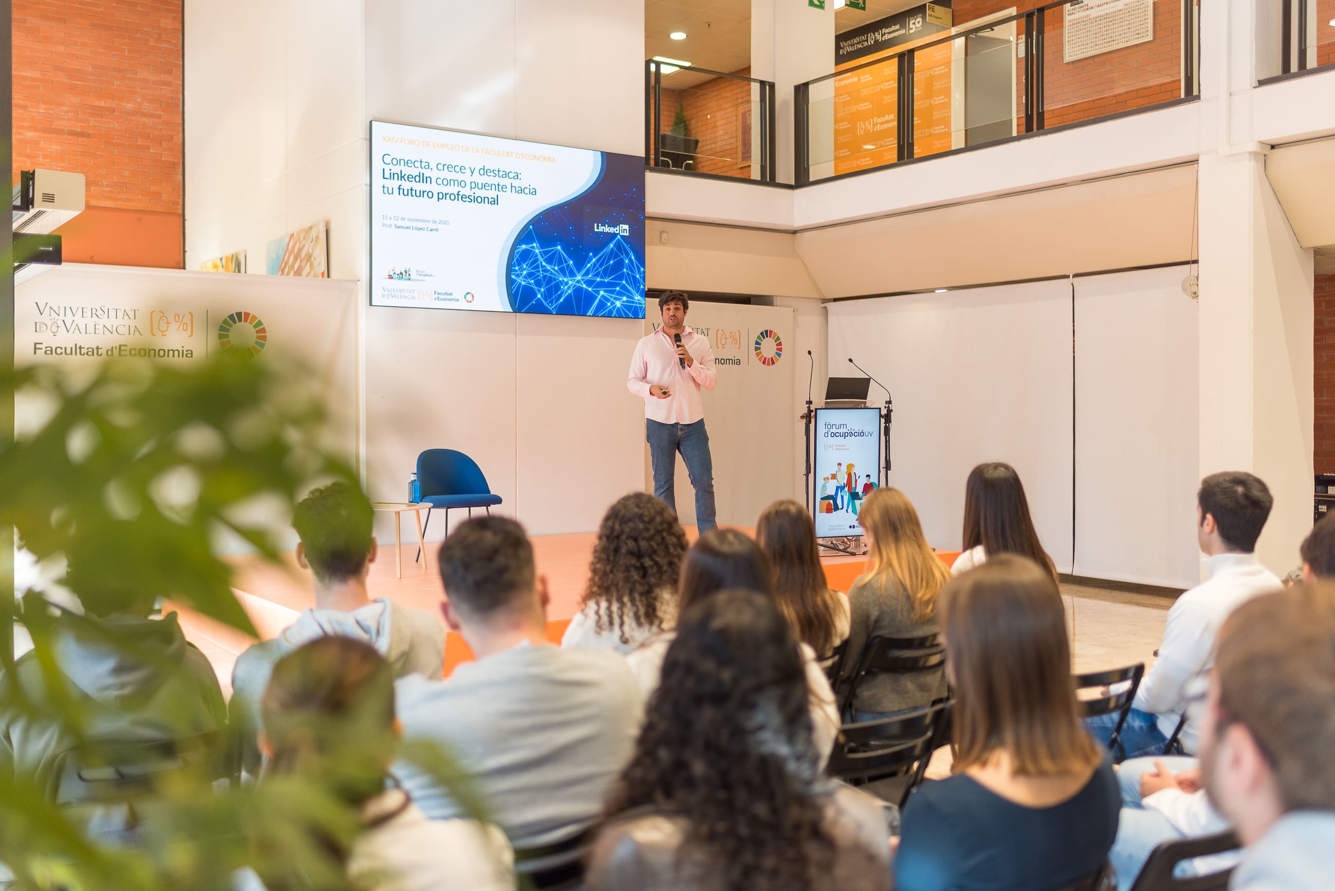 Del 11 al 13 de noviembre, coincidiendo con la celebración del XXIV Foro de Ocupación de la Facultat d’Economia, se programaron una serie de actividades destinadas a incrementar los conocimientos y las habilidades de nuestro estudiantado de los últimos cursos de grado y de máster, relacionadas directamente con su próxima inserción laboral y desarrollo exitoso de carrera profesional.