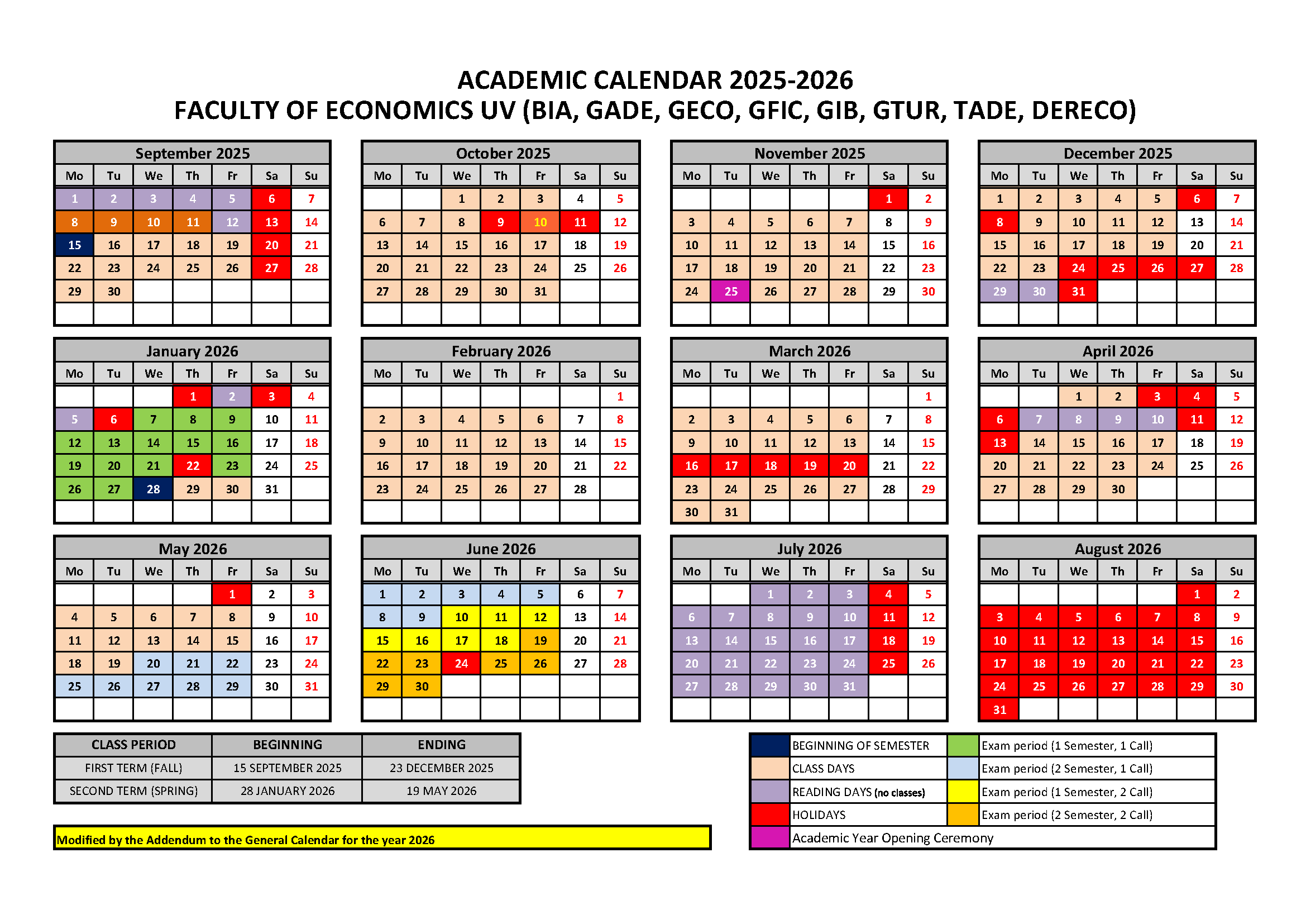 Faculty of Economics Calendar