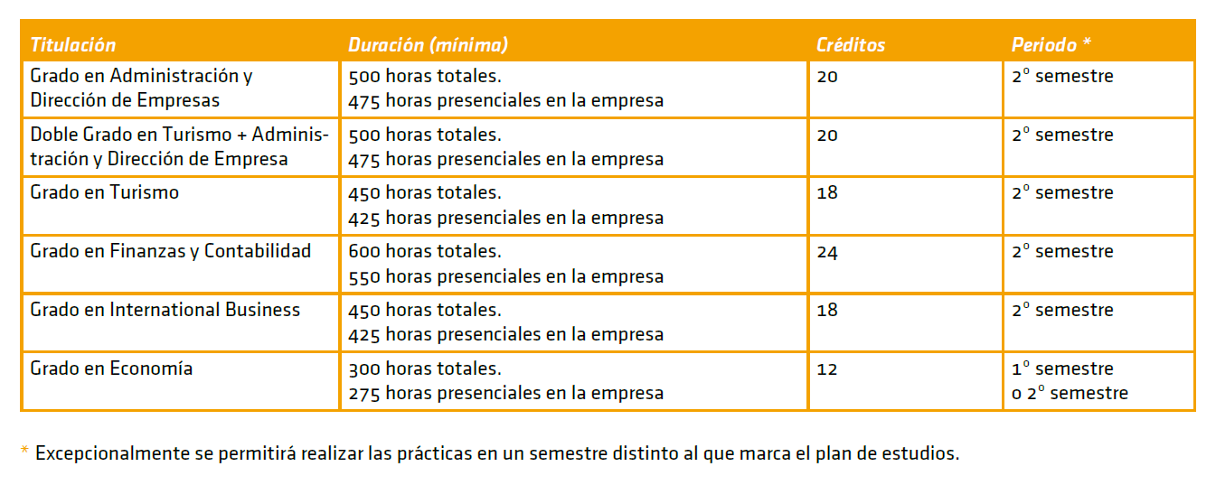 All the practices of the different degrees are supervised by an academic tutor of the Faculty of Economics.