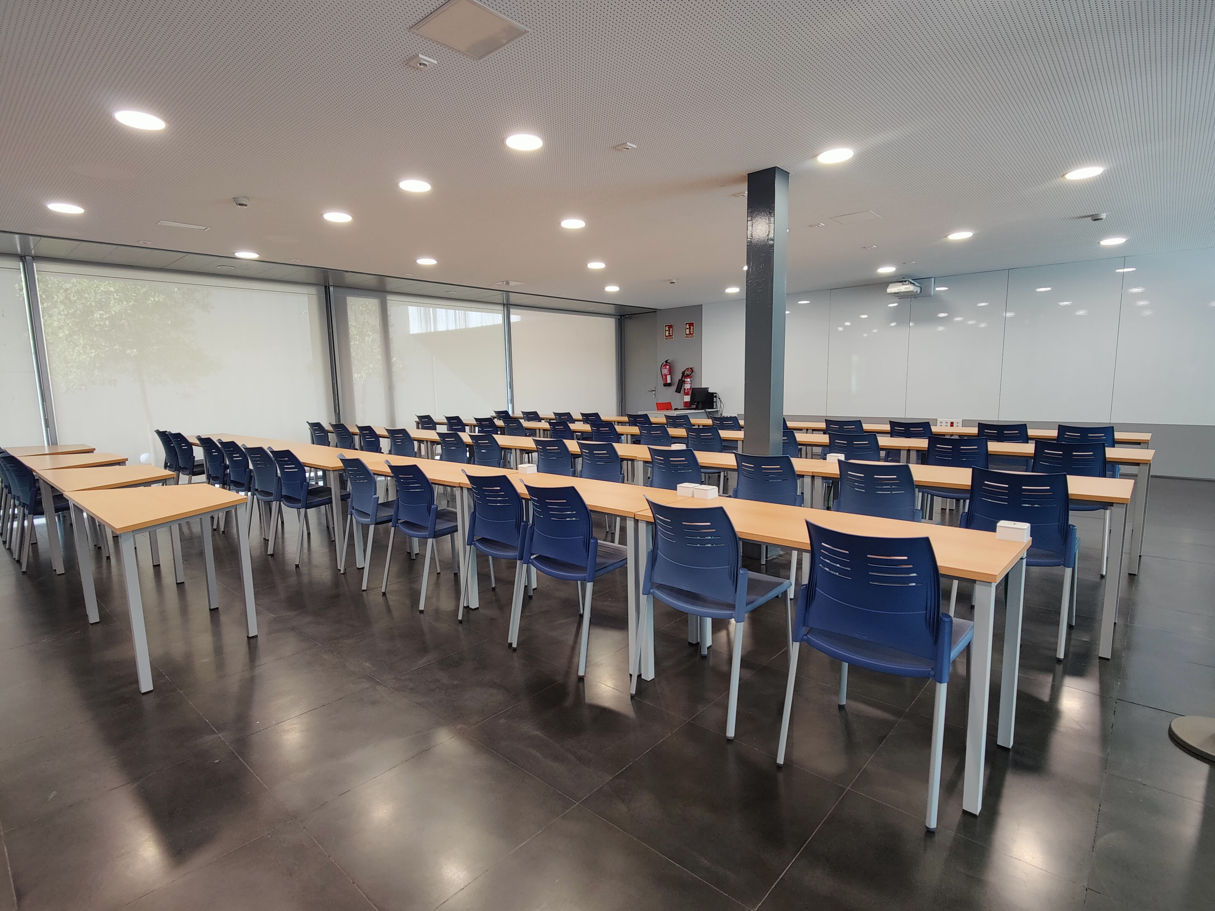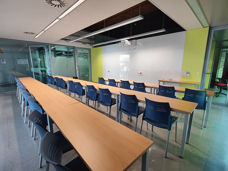 1 classroom with capacity for 96 people. Counts with a projector and a computer in the classroom, A/C. Equipped with sockets on all tables.
