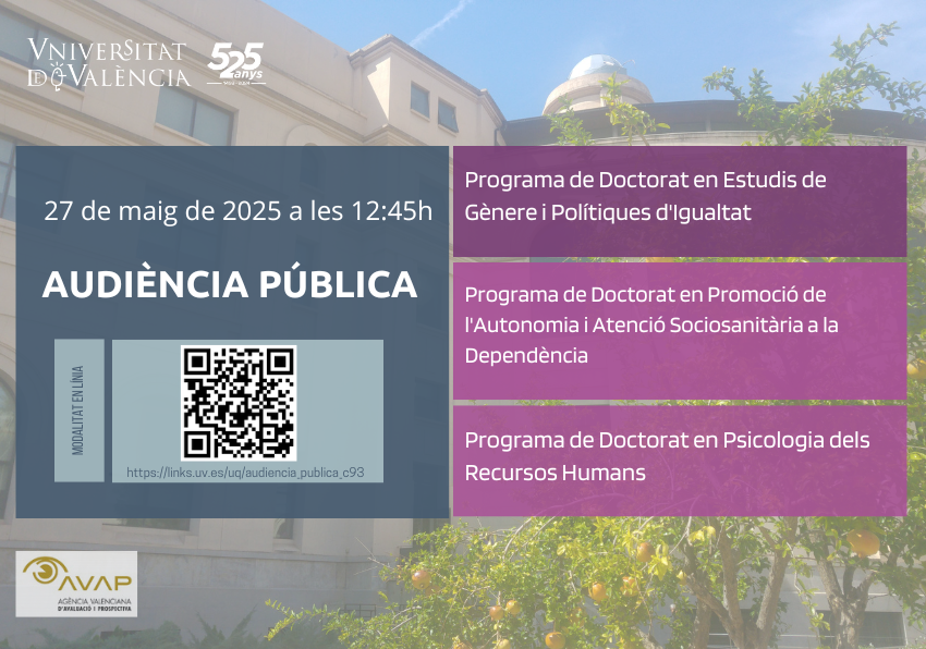 El departamento de Historia del Arte de la Universitat de València cuenta con una reconocida experiencia docente en su área de conocimiento, y ofrece un programa propio de doctorado desde 1986. Por su parte, la Universitat Jaume I cuenta desde su creación en el año 1991 con un área de Historia del Arte, actualmente inscrita en el Departamento de Historia, Geografía y Arte. La experiencia en postgrado de la UVEG y conjunta UVEG-UJI ha sido evaluada en sucesivas ocasiones, positivamente por el organismo que supervisa la educación superior en España, la Agencia Nacional de Evaluación de la Calidad y Acreditación (ANECA), que en su día distinguió al programa de doctorado “Arte, paisaje y cultura visual” (UVEG) con una Mención de Calidad (Resolución Ministerio de Ciencia e Innovación, 2008). Posteriormente, ese Doctorado se convirtió en el Máster universitario en “Historia del Arte y Cultura Visual”, en colaboración UVEG – UJI, actualmente en vigor, con Mención de Calidad y calificación Excelente por la Agencia Valenciana de l’Avaluació i Prospectiva (AVAP). El programa de Doctorado en Historia del Arte por las Universidades Jaume I de Castelló y la Universitat de València (Estudi General), que actúa como organizadora del mismo, ha sido distinguido con la Mención hacia la Excelencia para los cursos 2011-2012, 2012-2013 y 2013-2014 (Resolución del Ministerio de Educación). Para hacer factible la formación se aboga por una notable flexibilidad en la elección de propuestas que permitan completar las 150 horas de actividades formativas: 60 transversales (gestionadas por la Escuela Doctoral) y 90 específicas (gestionadas por el propio programa de doctorado).