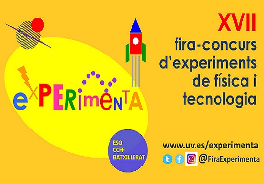 Fira EXPERIMENTA TOP el 28 de mayo en e-XPOCIÈNCIA 23/05/22 Los grupos de secundaria premiados en la Feria-Concurso Experimenta explican de nuevo sus proyectos. El 28/5 de 10 a 14 h en la ETSE-UV.