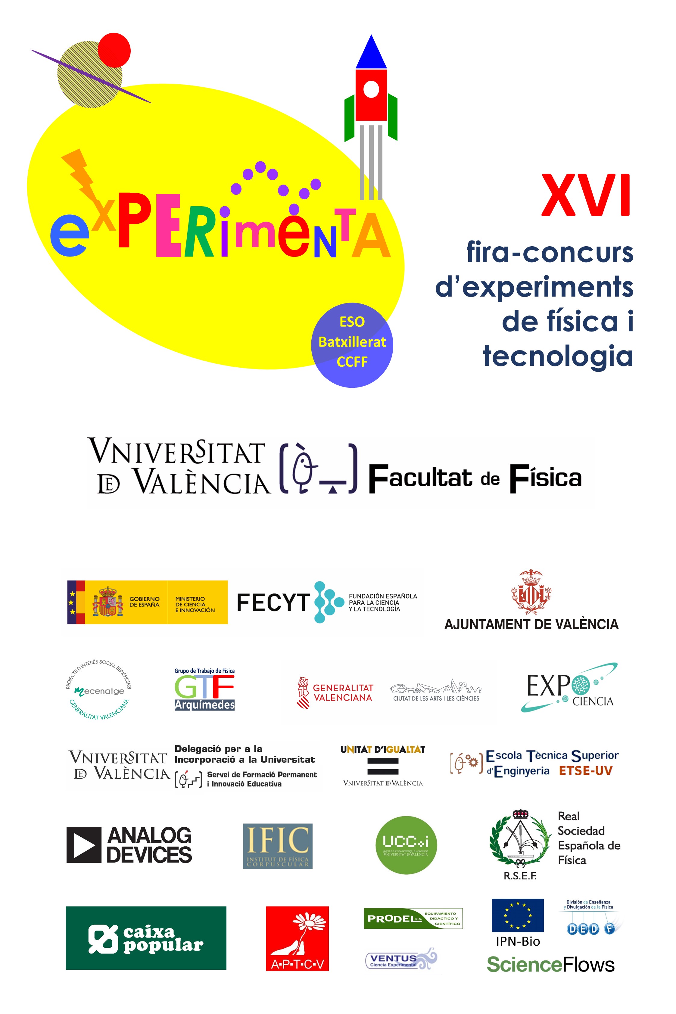 La Fira-Concurs Experimenta es una iniciativa organizada por la Facultat de Física de la Universitat de València en colaboración con diferentes entidades e instituciones, entre las que destaca la Fundación Española para la Ciencia y laTecnologia - Ministerio de Ciencia e Innovación.