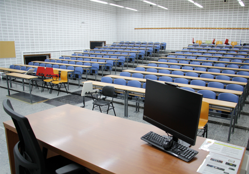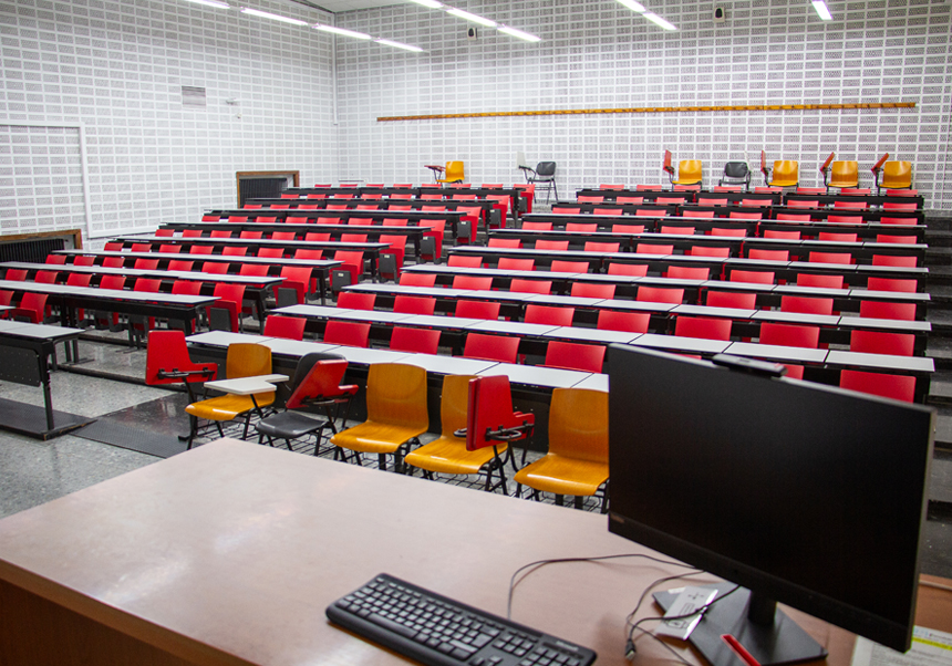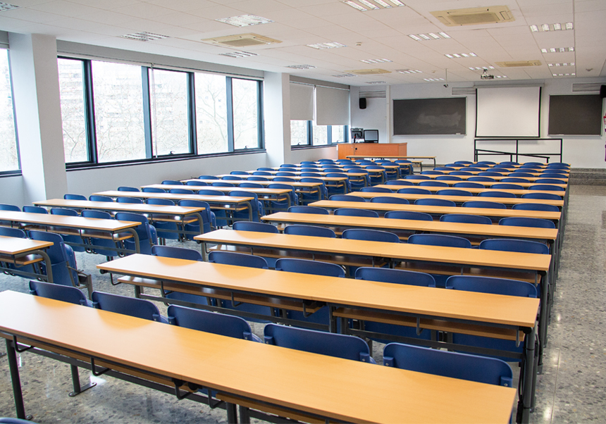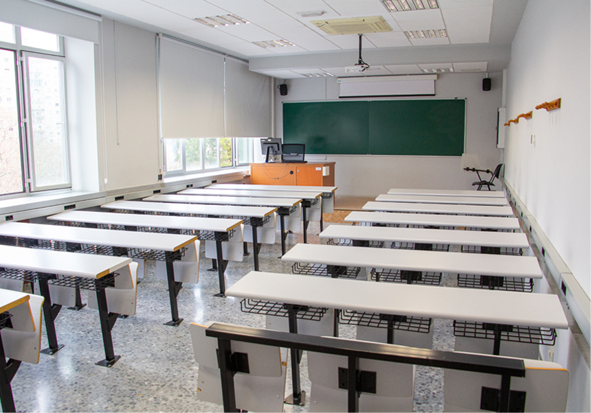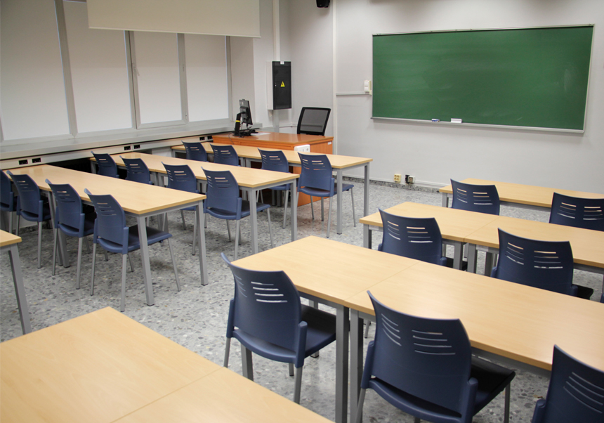 Aula adaptada per al personal docent amb mobilitat reduïda.
