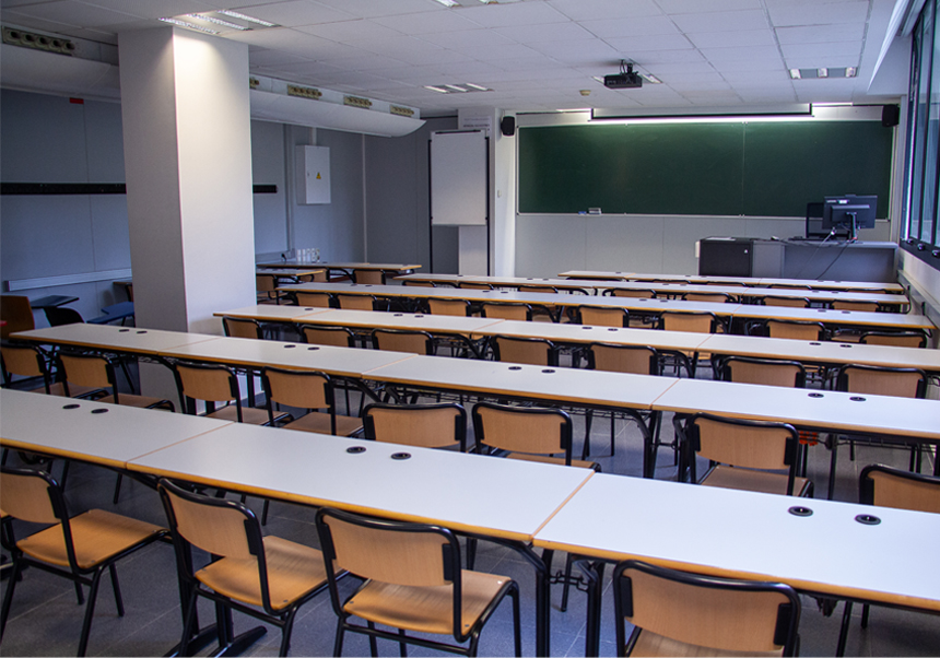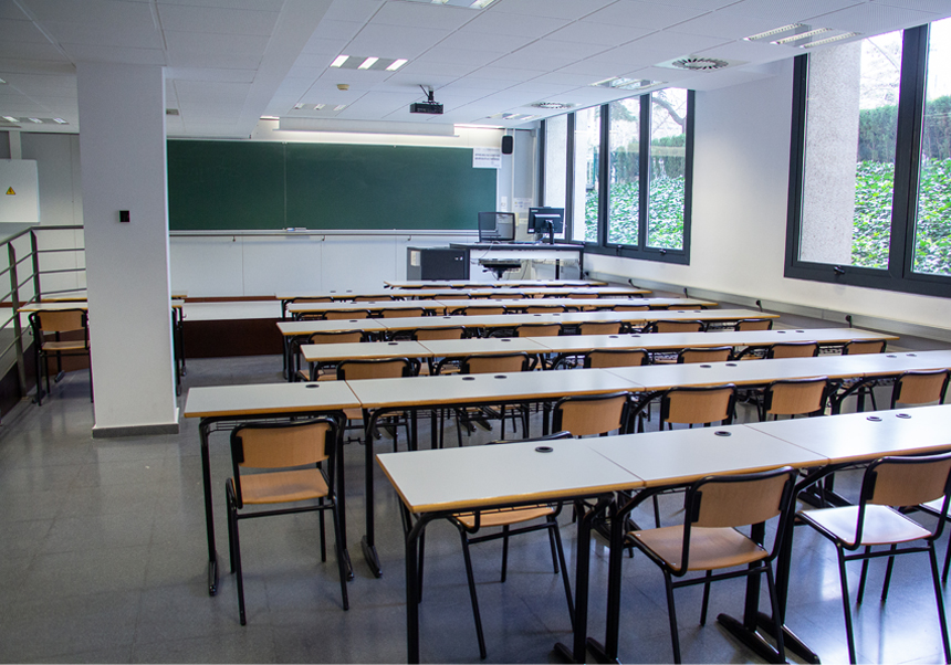 Aula adaptada per al personal docent amb mobilitat reduïda.