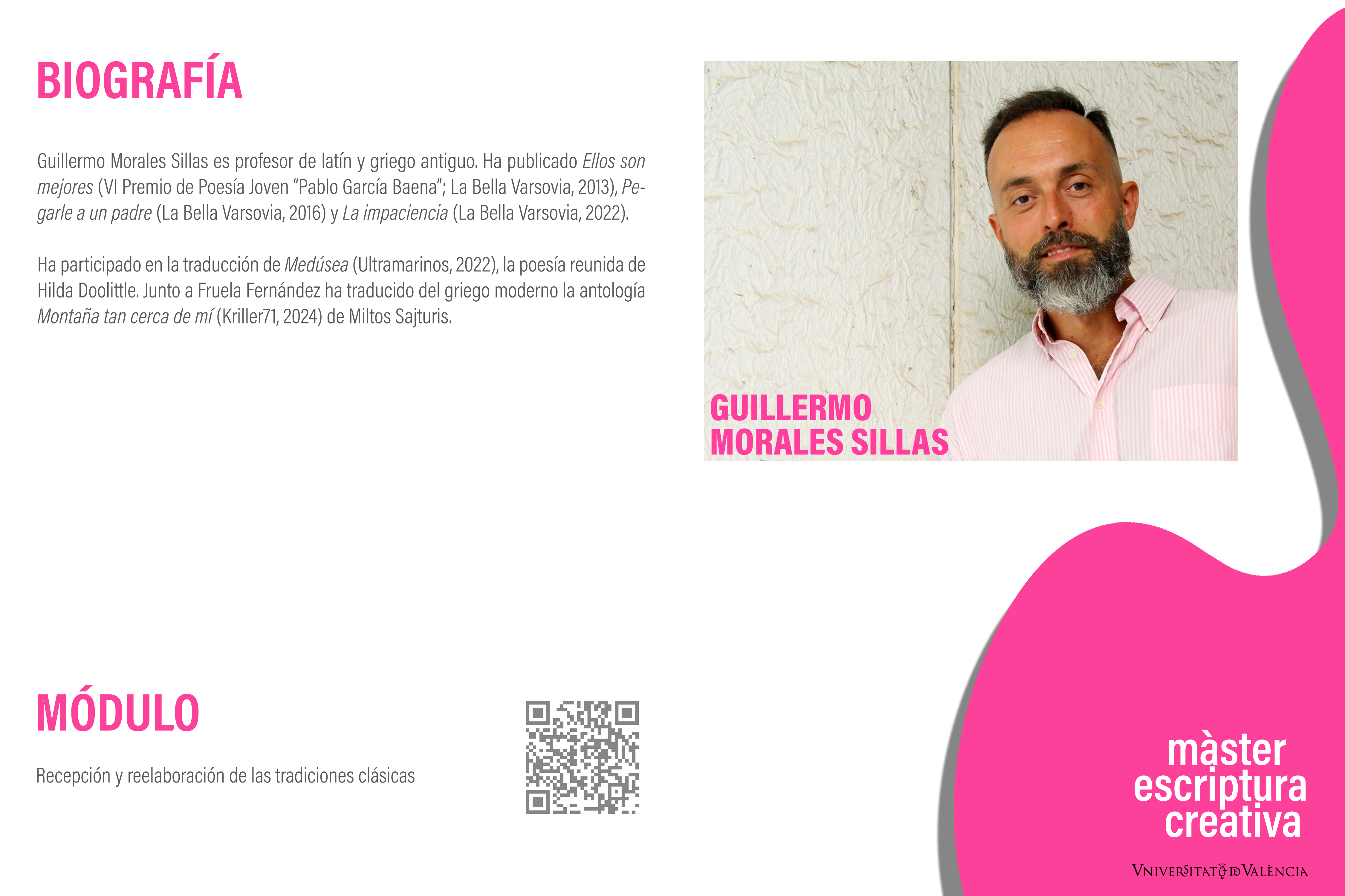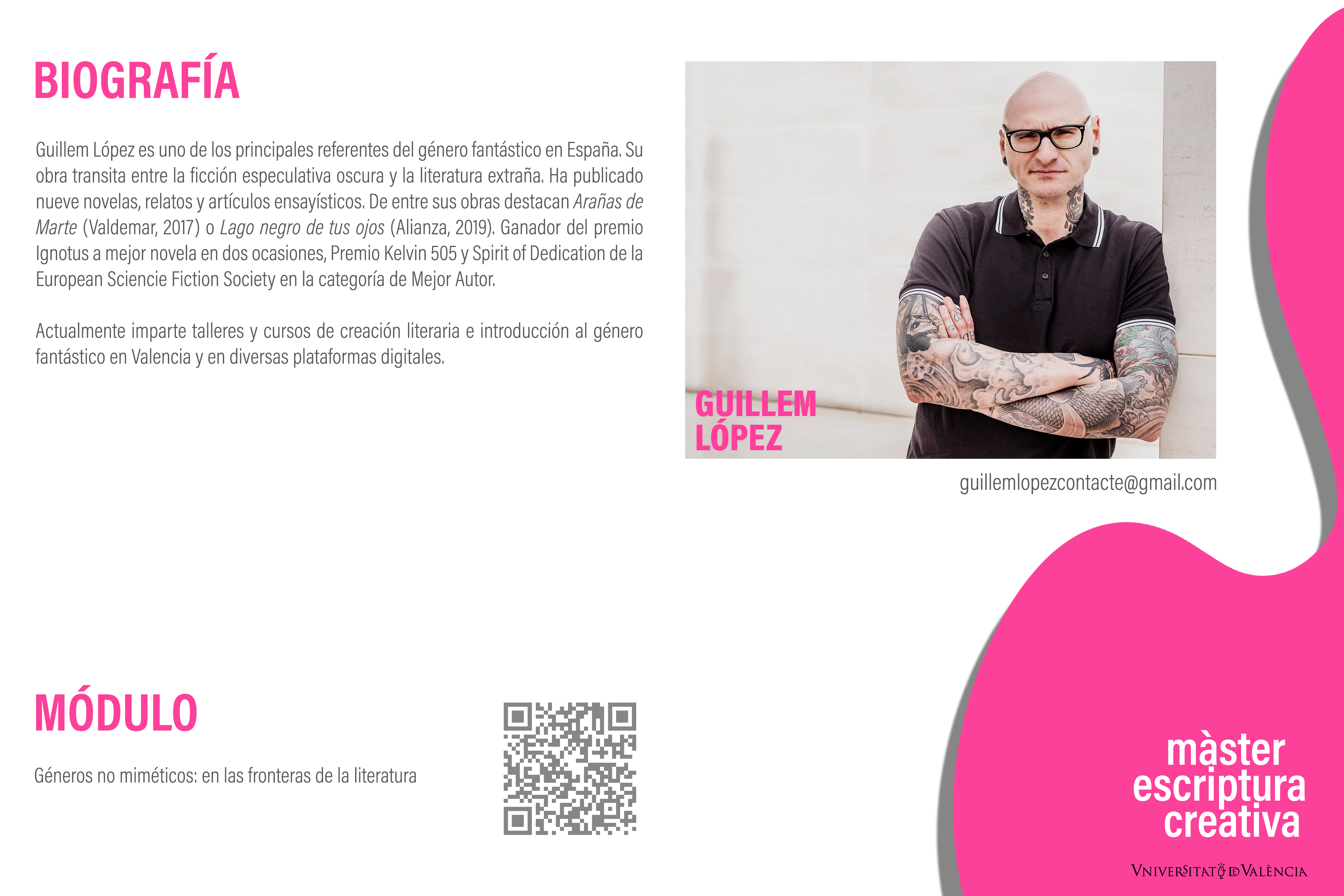 Por último, el alumnado desarrollará de forma individual un Trabajo Final de Máster (TFM) de índole creativa donde presentará un proyecto de escritura original.