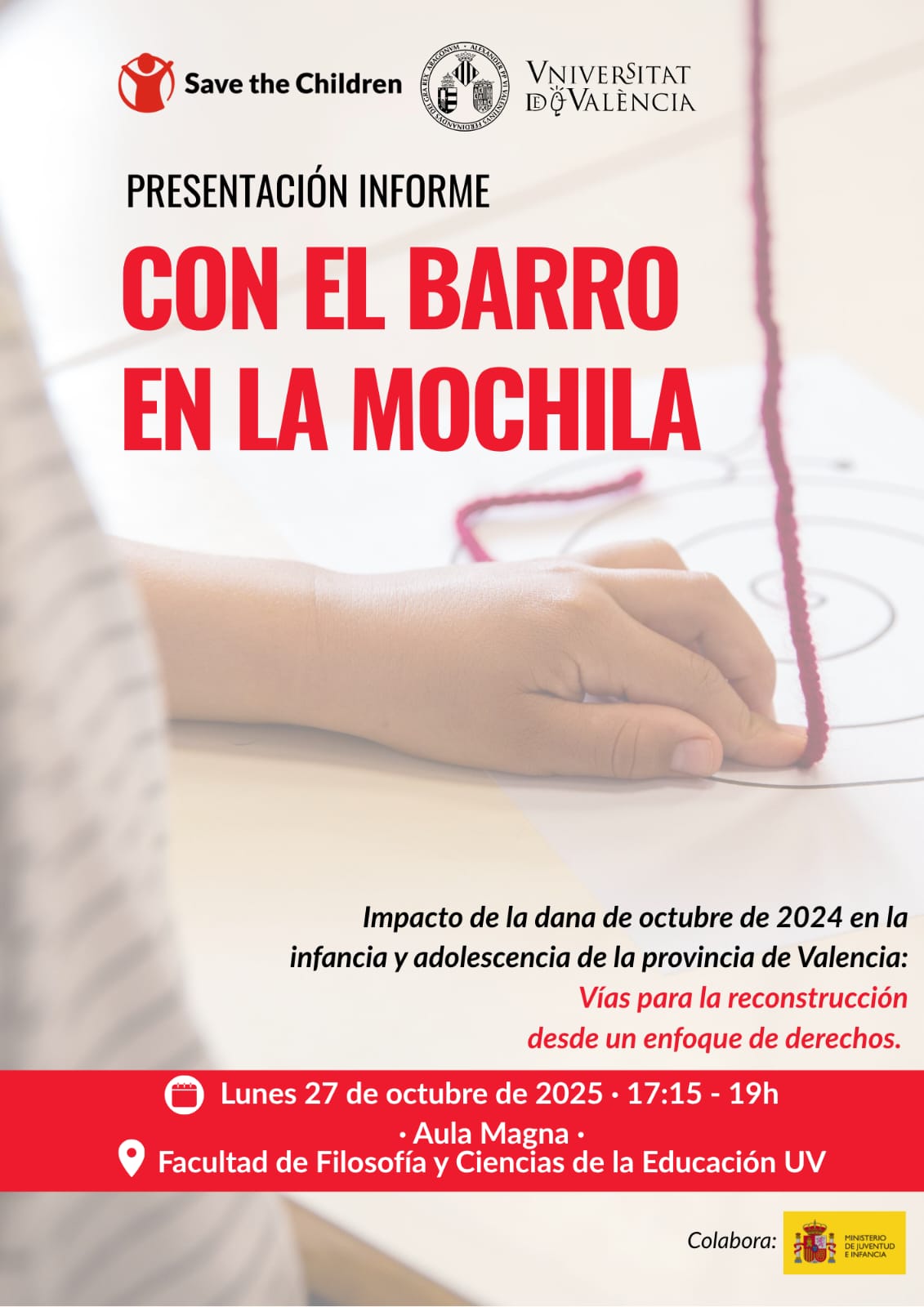 📢 Save the Children y la Facultat de Filosofia i Ciències de l'Educació presenten l'informe CON EL BARRO EN LA MOCHILA: Impacto de la dana de octubre de 2024 en la infancia y adolescencia de la provincia de Valencia: Vías para la reconstrucción desde un enfoque de derechos.