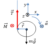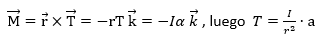 y de rotación (momento de Fuerzas externo neto igual a momento de inercia por aceleración angular). El único momento no nulo es el de la tensión