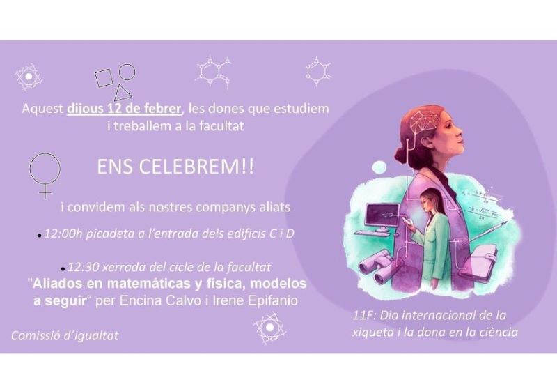 La Comisión de Igualdad de la Facultat de Física conmemora el 11 de febrero, Día Internacional de la Niña y la Mujer en la Ciencia La Comisión de Igualdad de la Facultat de Física conmemora el 11 de febrero, Día Internacional de la Niña y la Mujer en la Ciencia 10/02/26 La Comisión de Igualdad de la Facultat de Física conmemora el 11 de febrero, Día Internacional de la Niña y la Mujer en la Ciencia, de una manera muy especial, puesto que se cumplen 10 años desde su...[Leer más]
