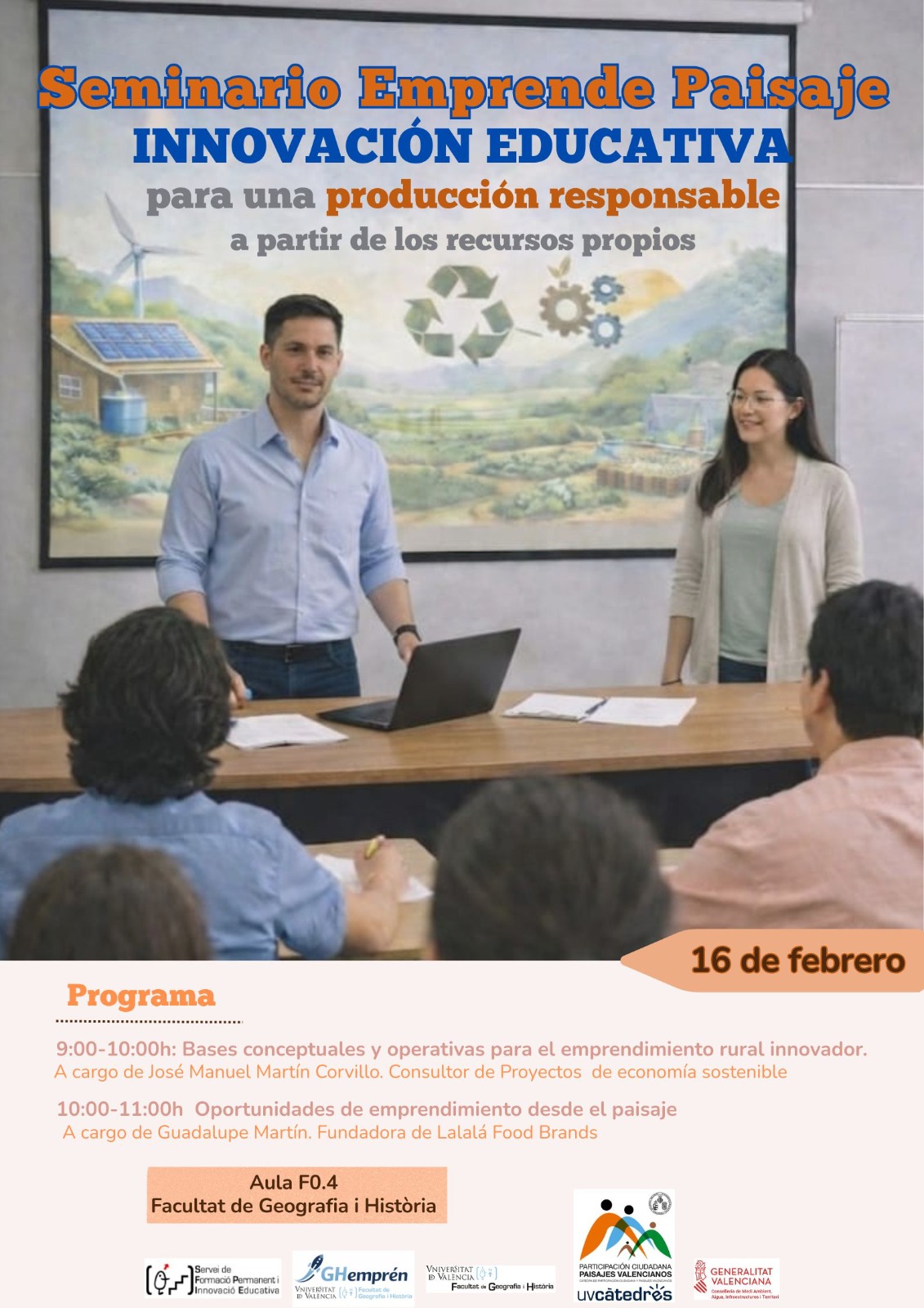Seminari Emprén Paisatge: innovació educativa per a una producció responsable a partir dels recursos propis, dia 16 de febrer. Aula F04.