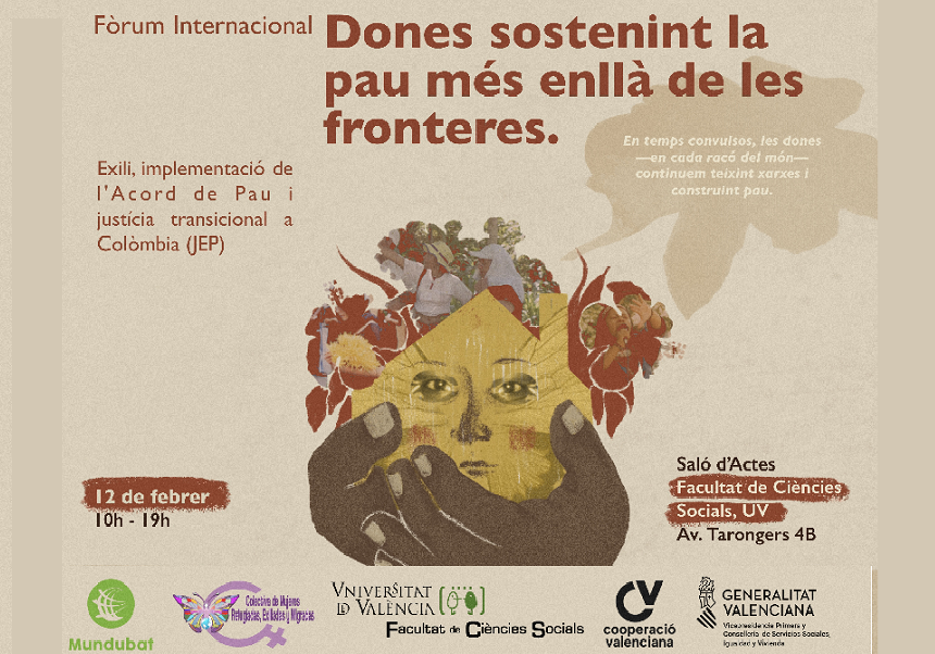 Mujeres sosteniendo la paz más allá de las fronteras 07/01/26 12 de febrero 2026 salón de actos de la Facultat de Ciències Socials 10 a 14 h. entrada libre hasta completar aforo necesita inscripción