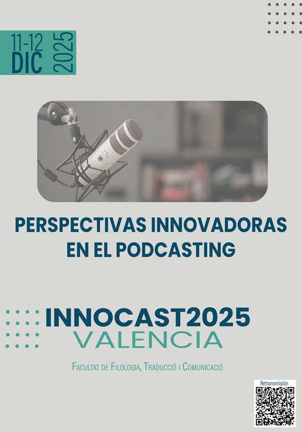En l'actual ecosistema mediàtic, caracteritzat per la hiperconectividad, la proliferació de dispositius intel·ligents i l'impacte de la intel·ligència artificial, el pòdcast s'ha consolidat com un format central en els processos de creació, circulació i consum de continguts sonors. En este context, el Congrés INNOCAST 2025 es presenta com un espai de reflexió i intercanvi acadèmic orientat a analitzar les perspectives innovadores del podcàsting i la seua projecció futura des d'una aproximació interdisciplinària. El propòsit de la trobada és contribuir a l'estudi del pòdcast com a mitjà de creixent rellevància en els àmbits comunicatiu, educatiu, cultural i tecnològic, abordant les seues implicacions teòriques i pràctiques, així com els seus desafiaments i oportunitats en un entorn mediàtic en constant transformació.