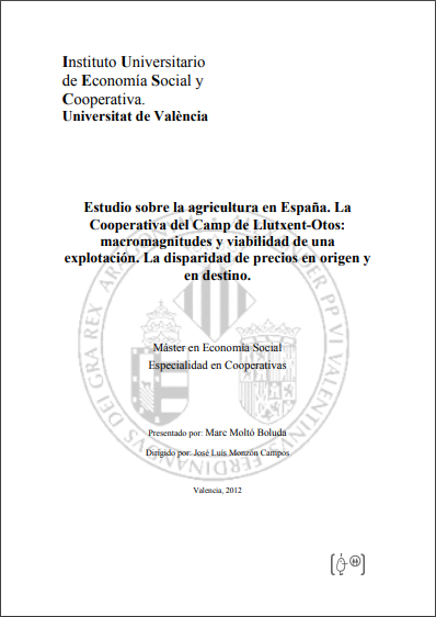 Estudio sobre la agricultura en España. La Cooperativa del Camp de Llutxent-Otos: macromagnitudes y viabilidad de una explotación. La disparidad de precios en origen y en destino