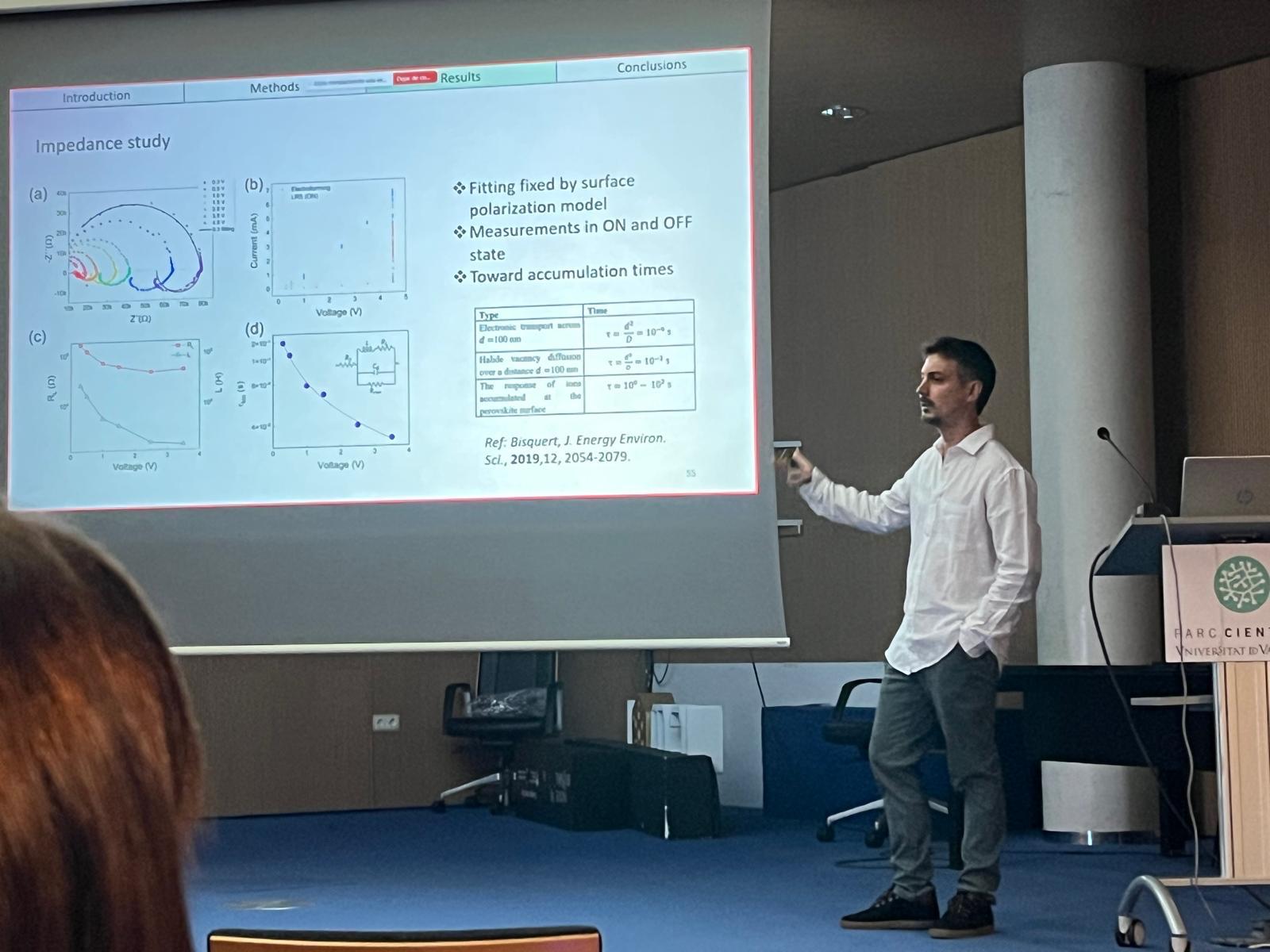 En su investigación, Ismael abordó el diseño, síntesis y caracterización de monocristales de perovskita de haluro metálico, explorando estrategias para la pasivación de defectos superficiales y la integración en dispositivos memristivos. Gracias a la alta calidad cristalina y a la baja densidad de defectos de estos materiales, se logró una comprensión más detallada de los mecanismos de conmutación resistiva, así como la demostración de comportamientos multistate estables y reproducibles. Estos resultados abren nuevas perspectivas para el desarrollo de computación neuromórfica, mostrando el enorme potencial de las perovskitas como plataforma versátil en computación avanzada y optoelectrónica.