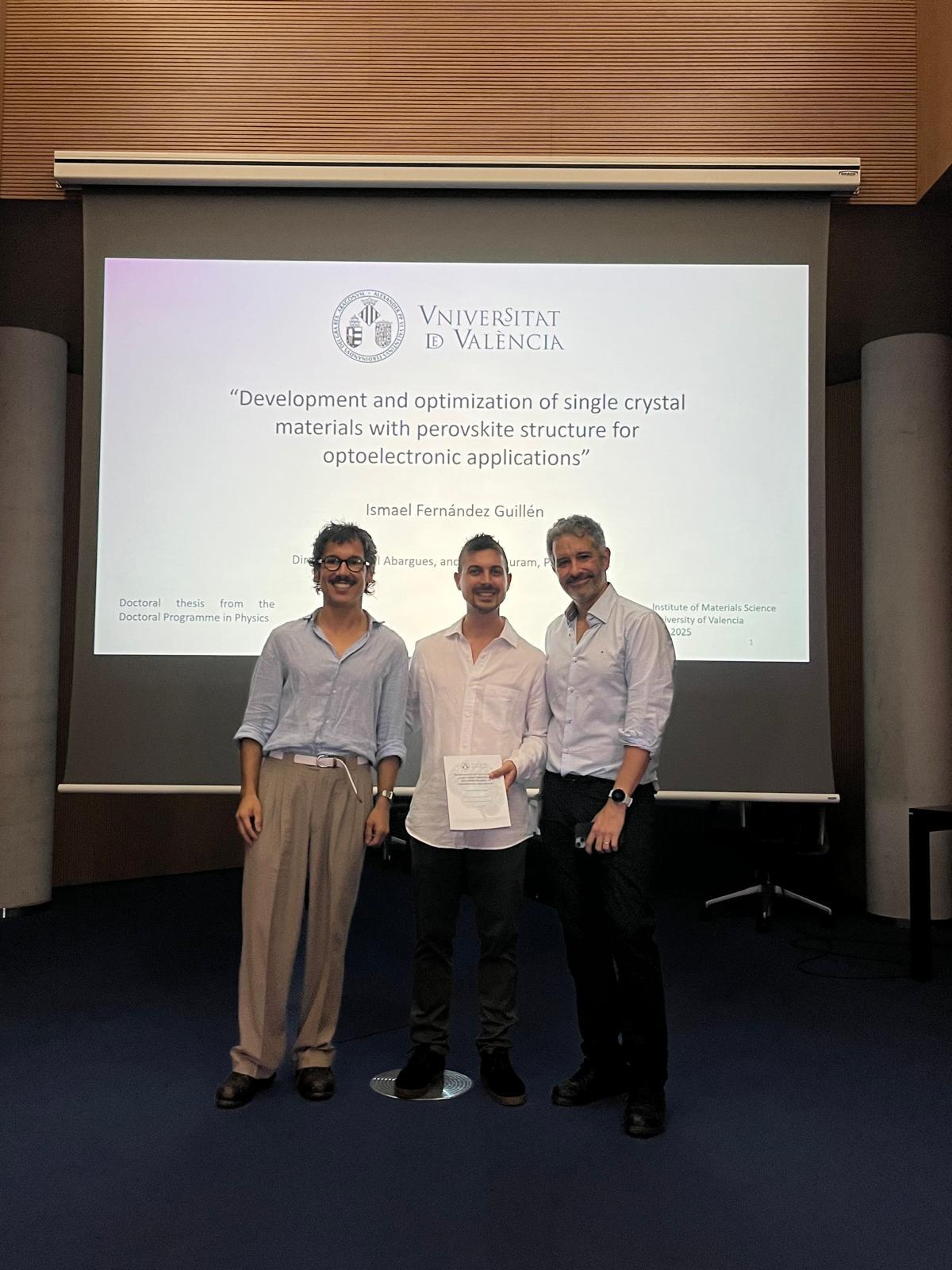 El investigador Ismael, perteneciente a la unidad de Materiales semiconductores del ICMUV, defendió con éxito su tesis doctoral titulada “Development and optimization of single crystal materials with perovskite structure for optoelectronic applications”, ante un tribunal compuesto por reconocidos especialistas en el campo.