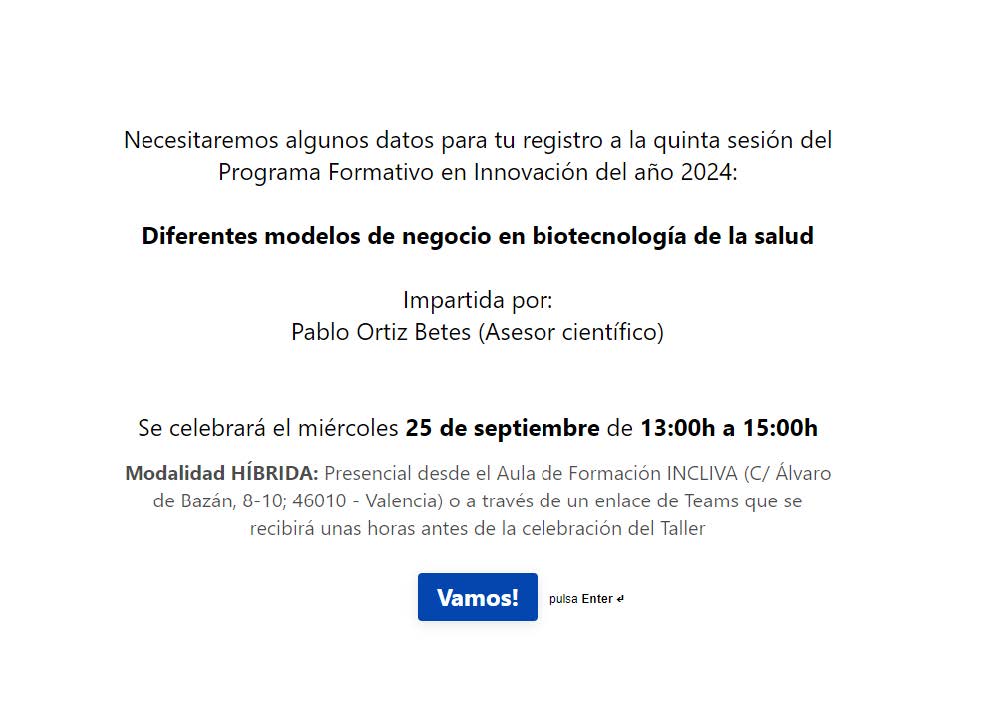 Programa formativo en Innovación año 2024 (seis sesiones independientes distribuidas entre febrero y noviembre de 2024)
