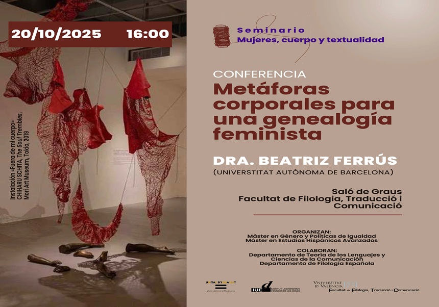 La segunda sesión será impartida por Beatriz Ferrús, catedrática de Literatura Hispanoamericana de la Universitat Autònoma de Barcelona. Su labor investigadora estudia la relación entre mujer, cuerpo y escritura en torno a la literatura conventual durante el periodo virreinal y a la formación de la figura de la escritora profesional en el siglo XIX. La sesión se celebrará el 20 de octubre, a las 16h, en el Salón de Grados de la Facultad de Filología, Traducción i Comunicación.