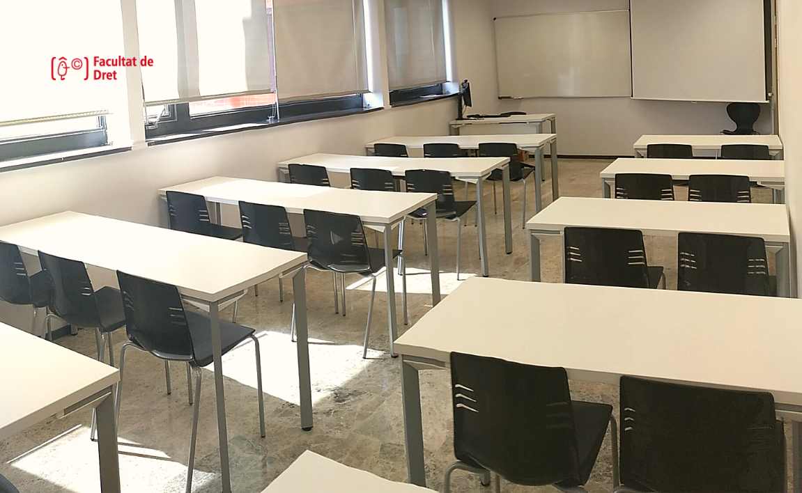With capacity for 60 people, the classroom has electrified tables, board for marker, interactive whiteboard, computer and projector
