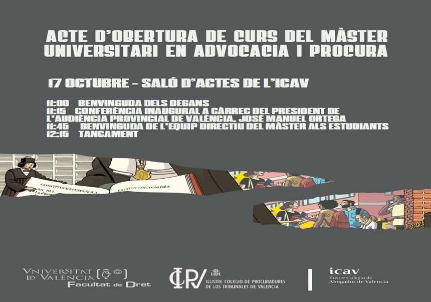 ACTE D’OBERTURA DE CURS DEL MÀSTER UNIVERSITARI EN ADVOCACIA I PROCURA DIVENDRES 17 D'OCTUBRE - SALÓ D’ACTES DE L’ICAV 11:00 HORES