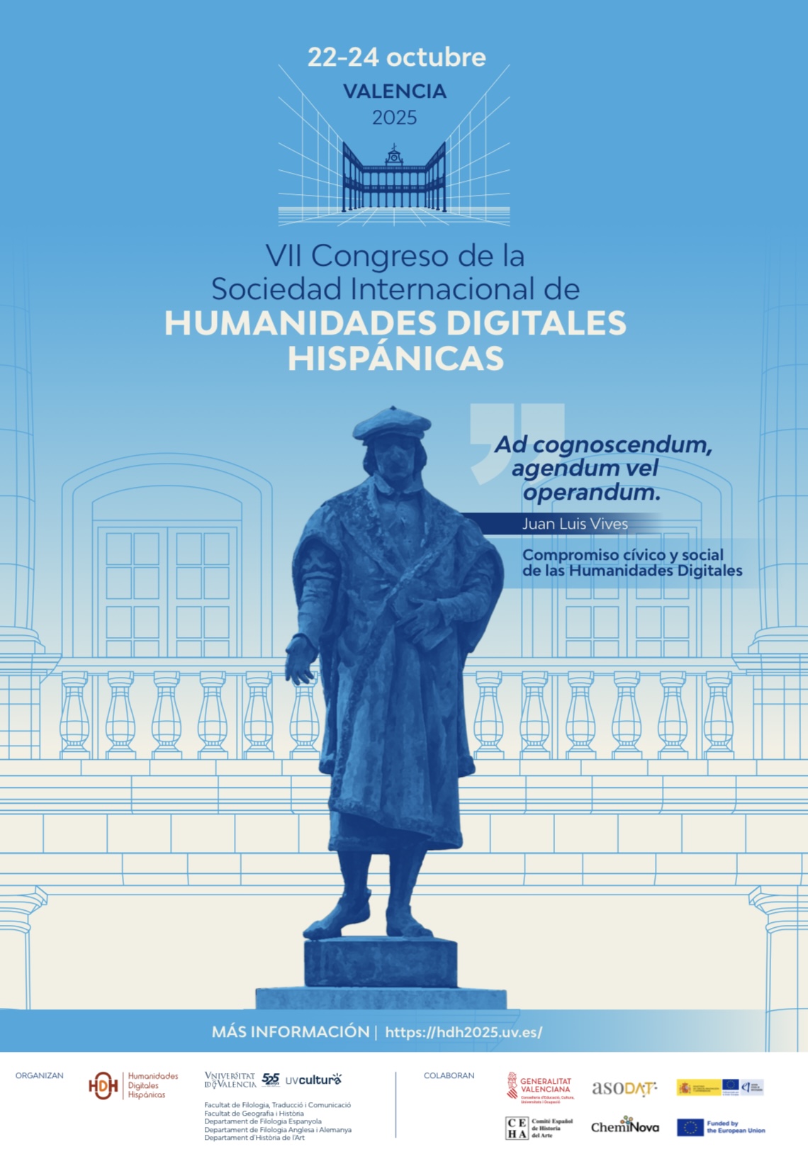 La pròxima setmana se celebra el VII Congreso de Humanidades Digitales Hispánicas (HDH), que tindrà lloc a València del 22 al 24 d’octubre de 2025.
