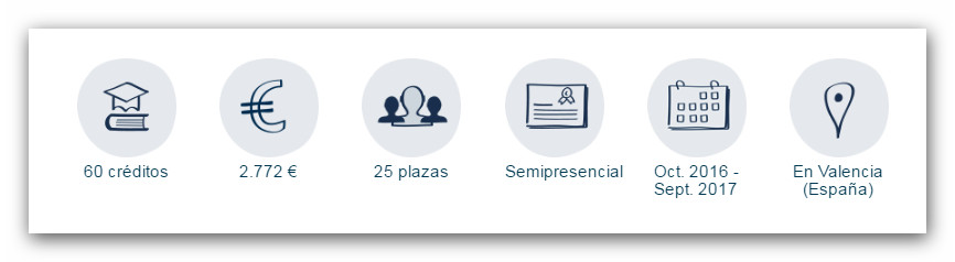 El nou disseny de la web continua amb la priorització de la informació més important en sis cercles, visibles res més entrar a la pàgina, en ells l'estudiant pot trobar fàcilment el preu total del màster, el nombre de crèdits que té, les places oferides, la seua modalitat, el calendari oficial i el lloc en el qual s'imparteix.