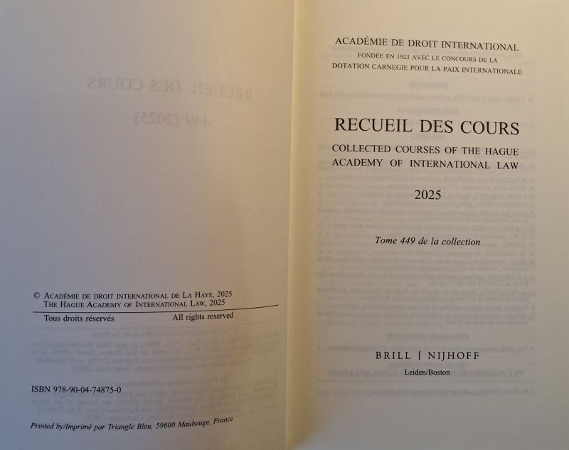 The course "New Dimensions in the Application of Foreign Law by Courts (and Arbitrators) and Senar-Judicial Authorities" has just been published in the Recueil de Cours: Volume 449, Brill/Nijhoff, Leiden/Boston, 2024, 426 pp., ISBN 978-90-04-74875-0).