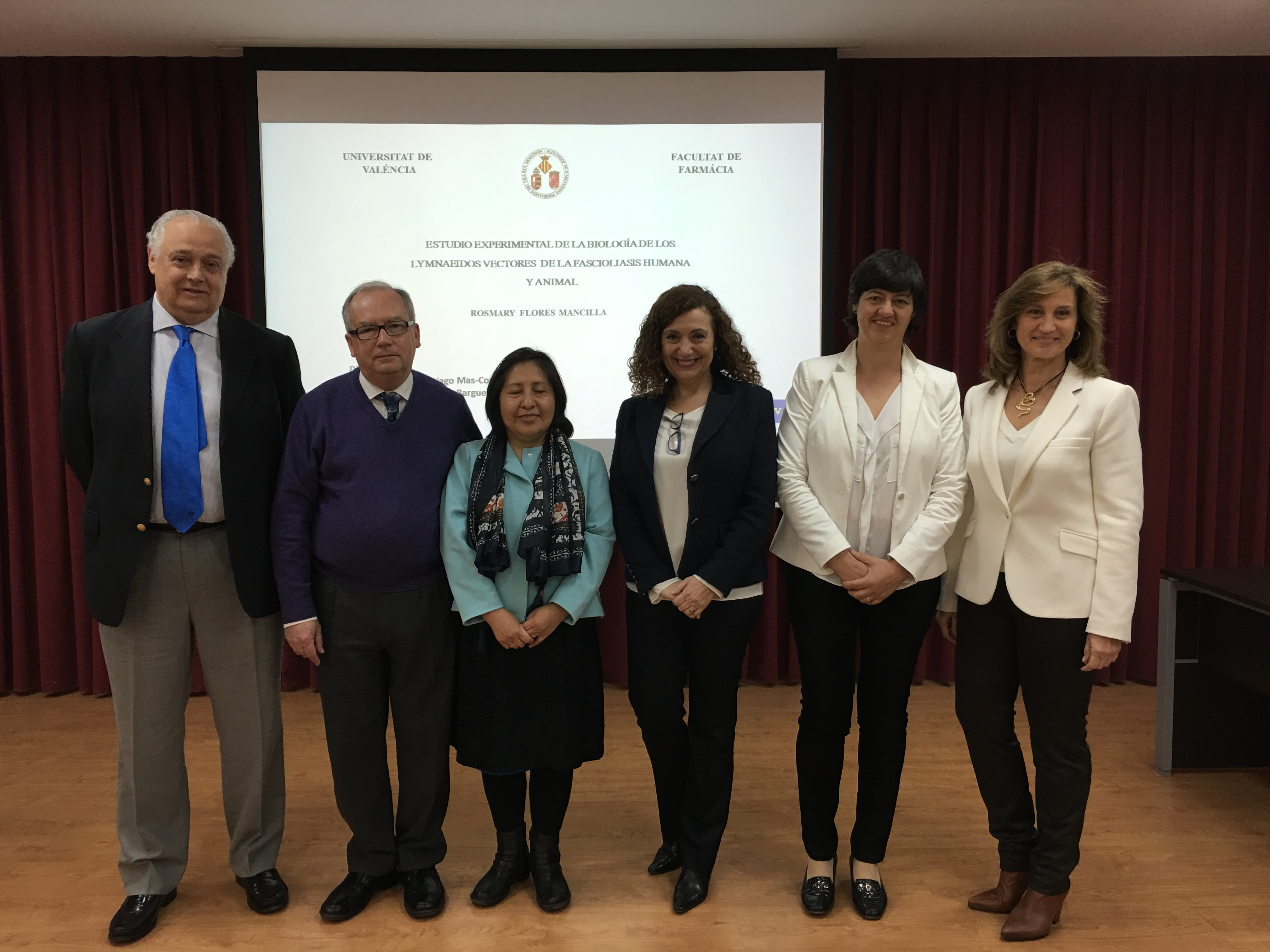 El passat 9 de febrer de 2016 a les 11 hores al Saló de Graus de la Facultat de Farmàcia va tenir lloc la defensa de la Tesi Doctoral presentada per Rosmary Flores Mancilla titulada "Estudio experimental de la biología de los Lymnaeidos vectores de la Fascioliasis humana y animal" i dirigida pel Dr. Santiago Mas-Coma i la Dra. M. Dolores Bargues Castelló.