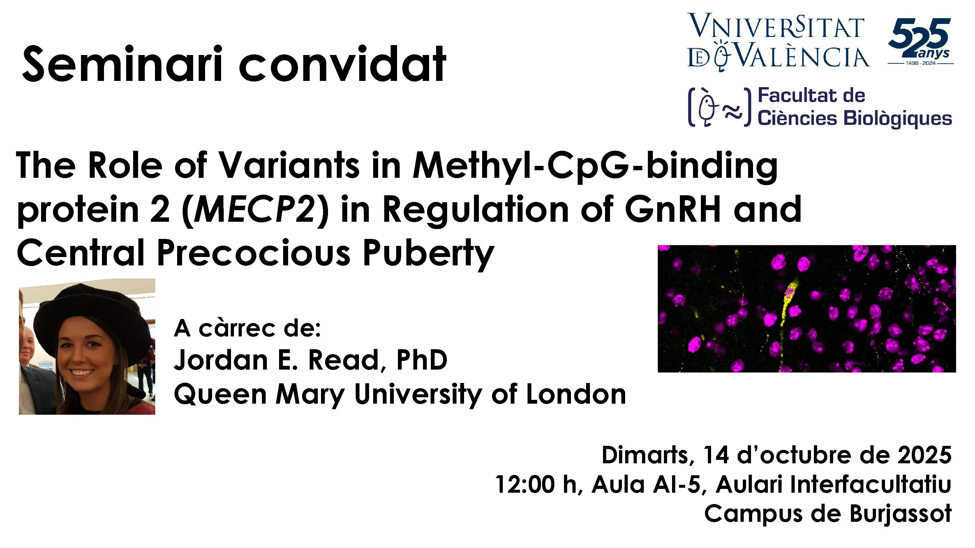Título'The Role of Variants in Methyl-CpG-binding protein 2 (MECP2) in Regulation of GnRH and Central Precocious Puberty' a cargo de la Dra. Jordan E. Read, de la Queen Mary University of London