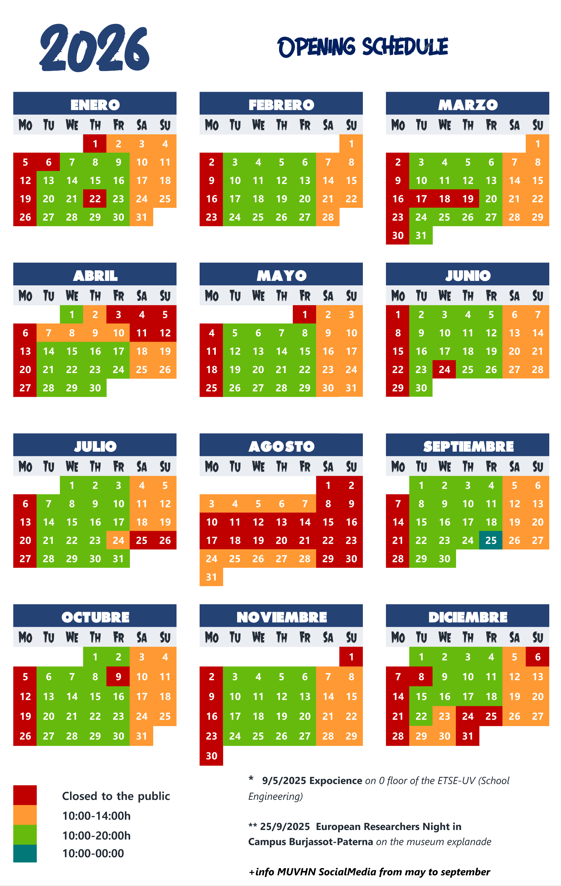 THE MUSEUM WILL REMAIN OPEN TO THE PUBLIC, FROM TUESDAY TO FRIDAY FROM 10:00 AM TO 8:00 PM, AND WEEKENDS FROM 10:00 AM TO 2:00 PM, EXCEPT RED DAYS.