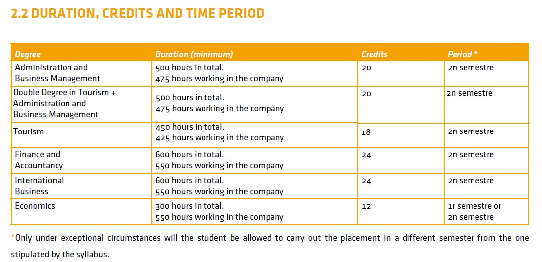 Students who meet the requirements must enrol in the subjects of “Business Placements” and “End-of-Degree Work”
