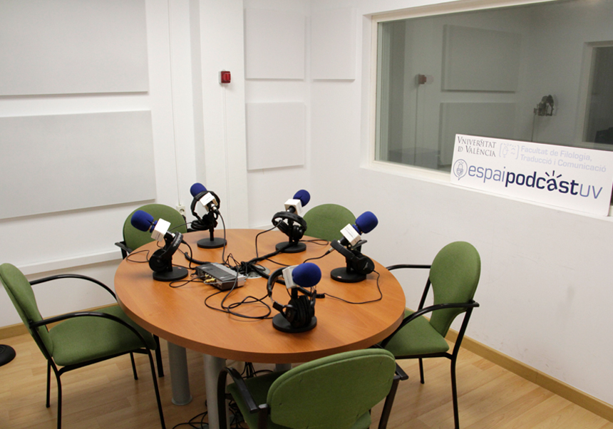 Radio studio with a 5-person booth, standing microphone and lectern for voice-overs, control room equipped for the production and recording of programs (mixing board, computer, monitors, sound card and recording indicator lights) and a newsroom with 4 places equipped with a computer for video and audio editing, mixing board, headphones, microphone and printer.