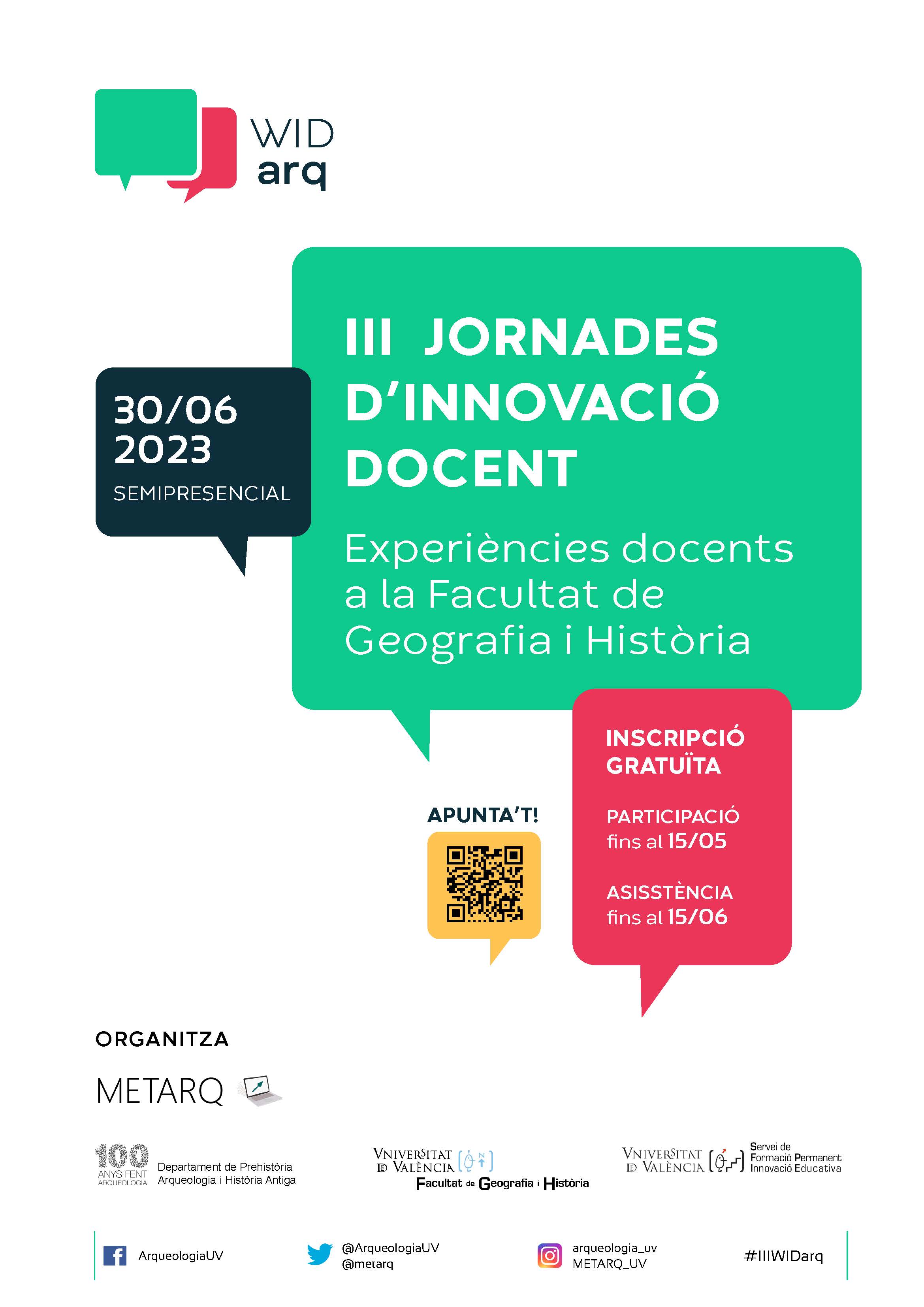 - III WIDarq. Jornades d’Innovació Docent en la Facultat de Geografia i Història (30/06/23).