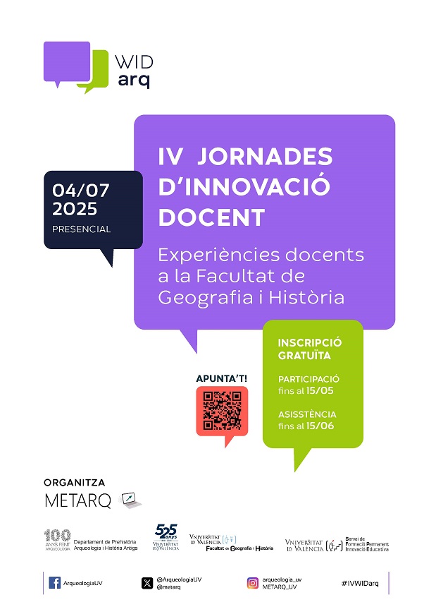 - IV WIDarq. Jornades d’Innovació Docent en la Facultat de Geografia i Història (04/07/25).