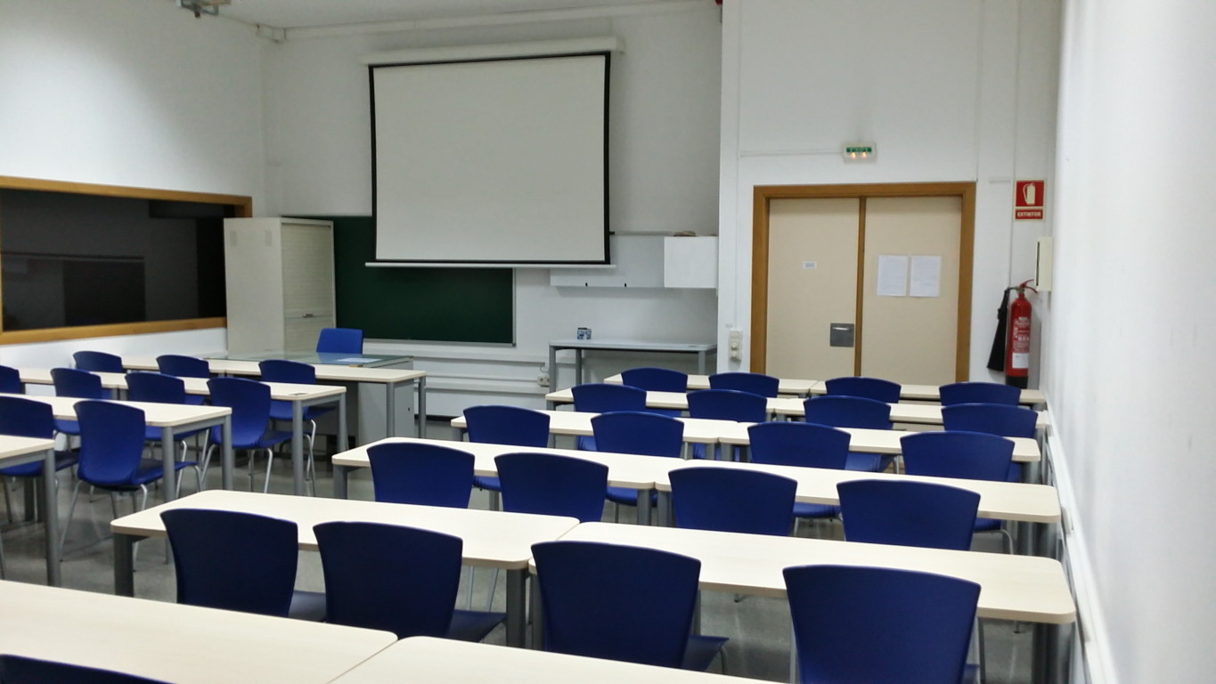 Resources: Computer for the professor connected to Internet and to the projector lamp of the room with RGB and HDMI additional inputs for laptops and RCA for video, projection screen and blackboard.