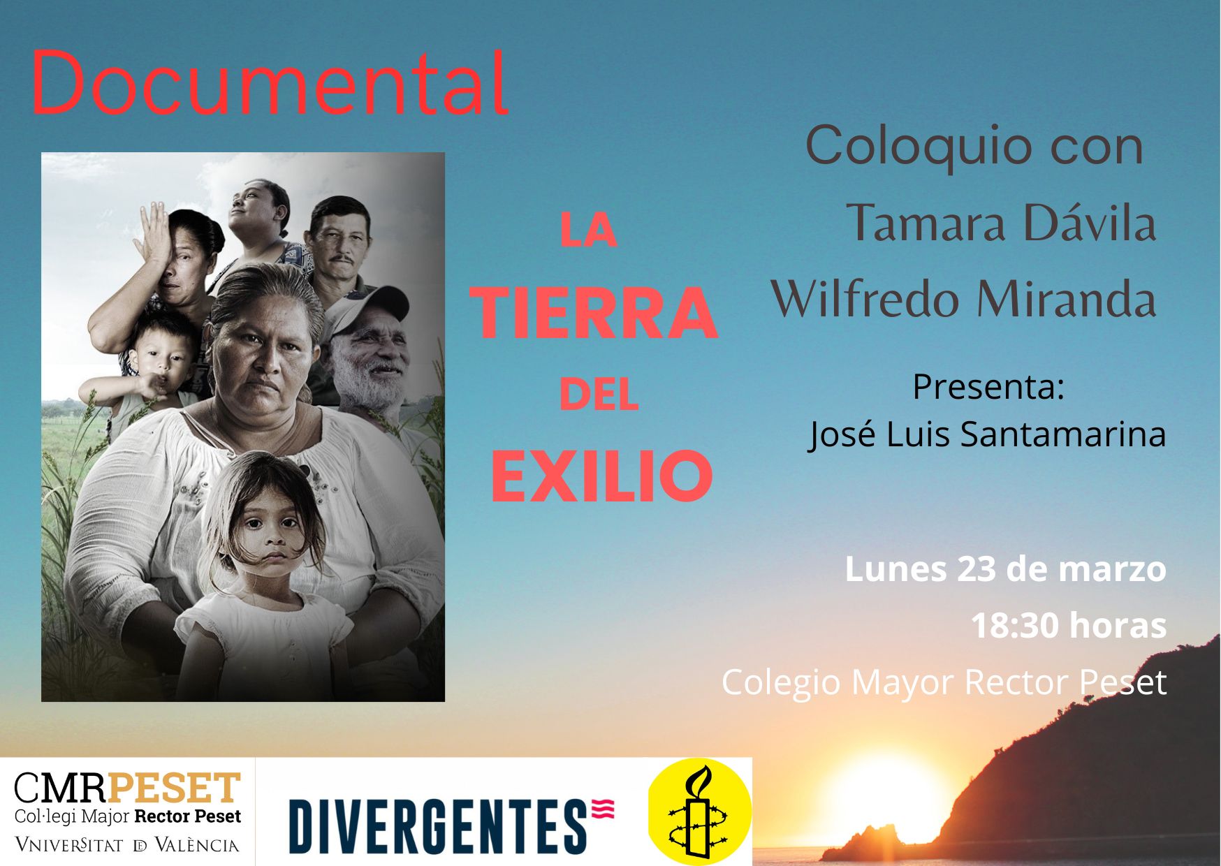 Col·loqui posterior amb Tamara Dávila, expresa de conciència, feminista i activista de drets humans i el guionista documental, Wilfredo Miranda. Presenta i modera, Ignacio Gay Arenas, president d'Amnistia Internacional Comunitat Valenciana.