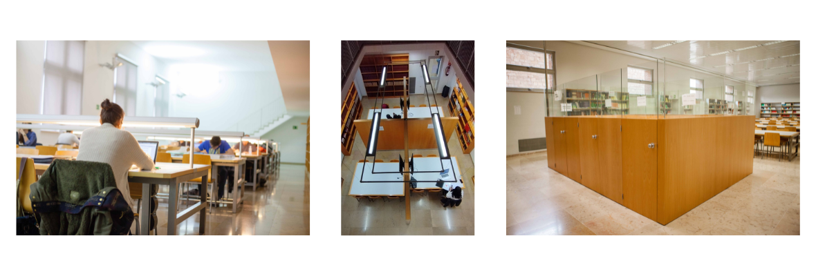 La biblioteca compta amb 1.100 llocs d’estudi distribuïts en els següents espais: