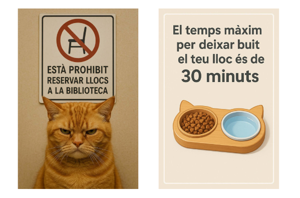 - La biblioteca no es fa responsable dels objectes personals que es deixen a la sala.