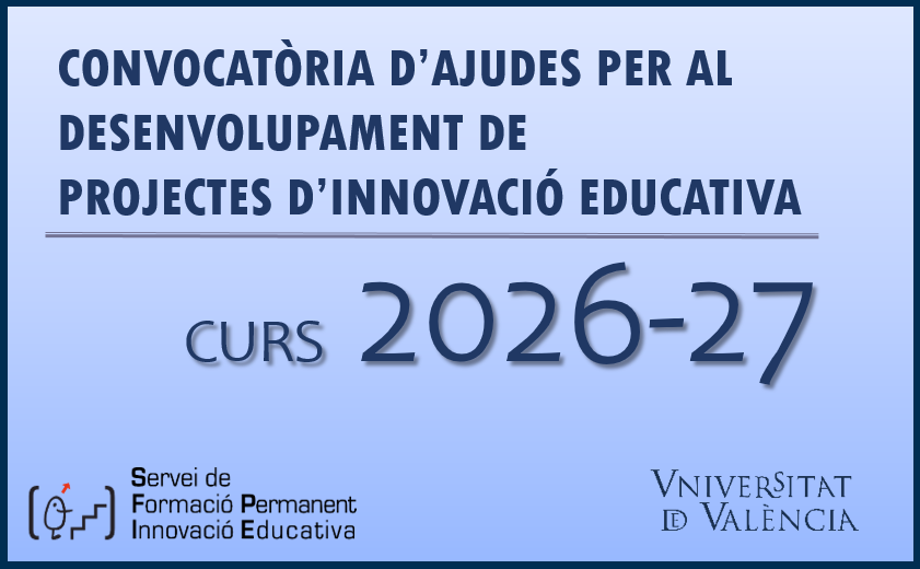 RESOLUCIÓ DE 23 DE FEBRER DE 2026 DEL RECTORAT DE LA UNIVERSITAT DE VALÈNCIA, PER LA QUAL ES CONVOQUEN AJUDES PER AL DESENVOLUPAMENT DE PROJECTES D’INNOVACIÓ EDUCATIVA PER AL CURS 2026-27 24/02/26 [Llegir més]