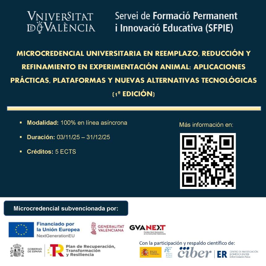 Amb una càrrega de 5 ECTS i el suport científic del CIBERER, esta formació oferix una actualització essencial sobre els principis del 3R i les ferramentes tecnològiques més innovadores aplicades a l'experimentació animal.
