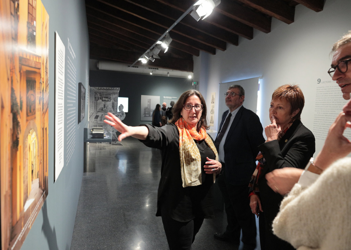 El jueves 25 de abril se inauguró la exposición "Trobes: 550 años de la imprenta en València" con la presencia de la rectora de la Universitat de València, Mavi Mestre Escrivà, acompañada por la directora de la SBD, Cristina Tomàs Martínez, y la directora de la biblioteca Mª Jesús García Mateu, así como los comisarios de la muestra. No solo se limitó al escenario local, puesto que también contó con la presencia de los rectores de las universidades europeas de la alianza Forthem, reforzando así los lazos académicos a nivel internacional.