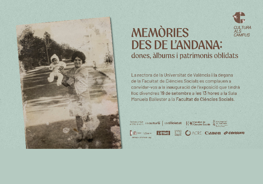 Memòries des de l'Andana: dones, àlbums i patrimonis oblidats Memòries des de l'Andana: dones, àlbums i patrimonis oblidats 17/09/25 Inauguració dia 19 de setembre a les 13 h. Sala Manuela Ballester de la Facultat de Ciències Socials fins al 31 d'octubre horari: dilluns a divendres: 9:00 h.-20:00 h.[Llegir més]
