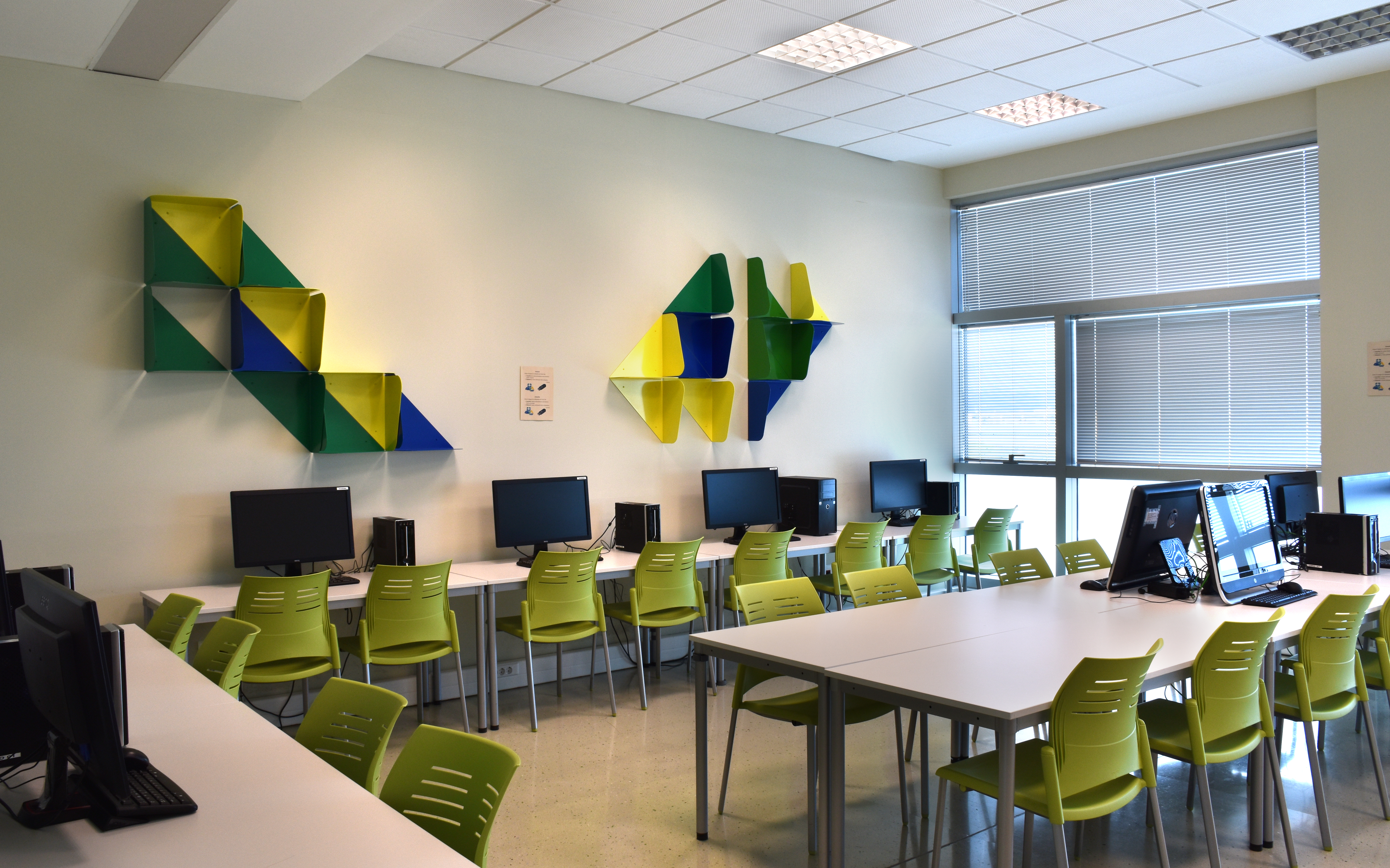 - 12 taules dobles perimetrals amb 24 llocs de treball