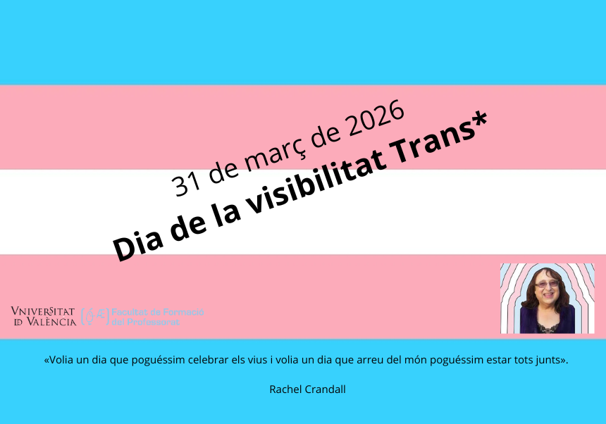 31 de març: Dia de la Visibilitat Trans* 30/03/26 El 31 de març se celebra el día internacional de la visibilitat trans*. El 2009, l’activista Rachel Crandall va proposar que aquesta jornada es dedicara a celebrar les persones trans* i a...