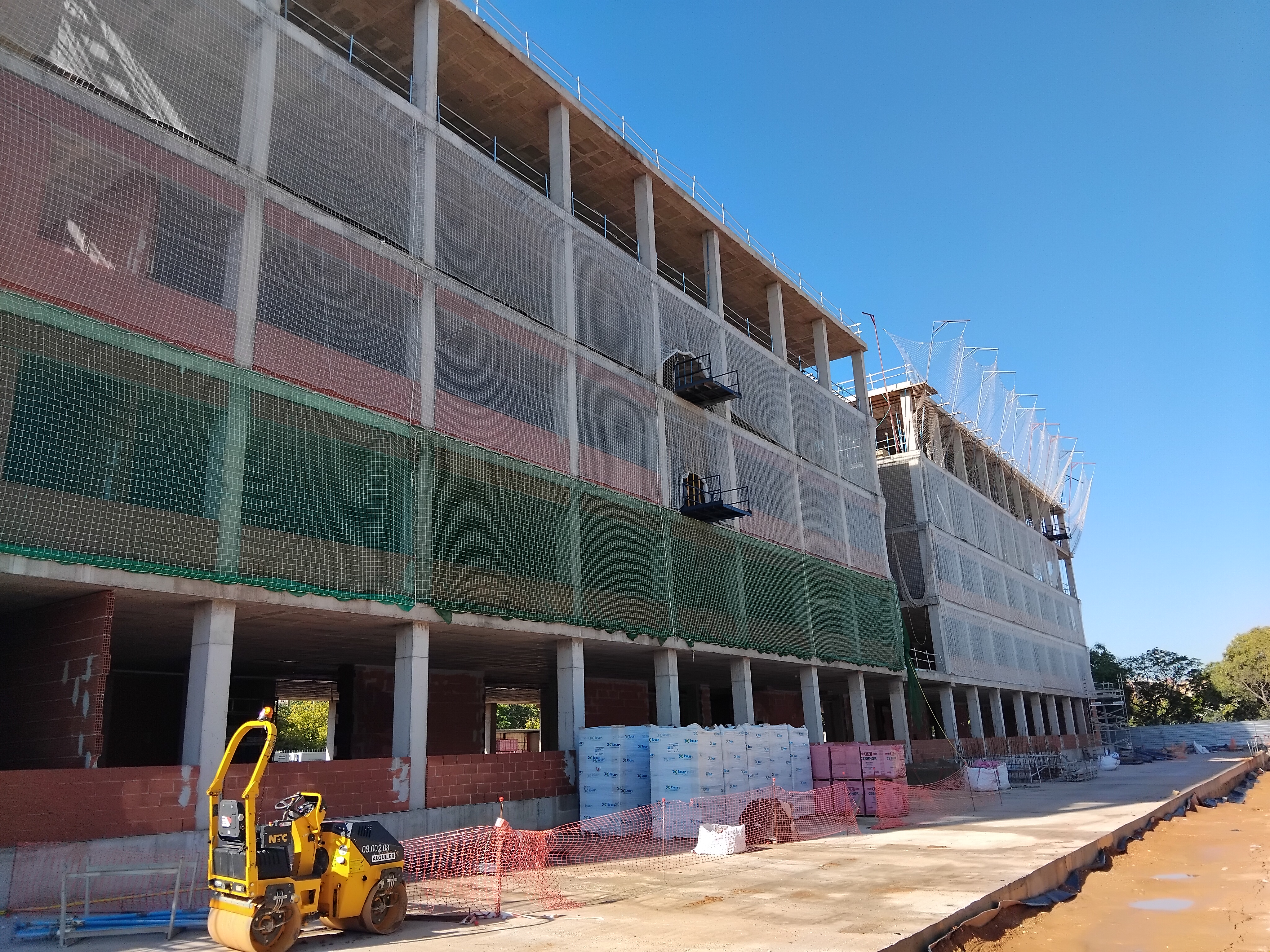 Consequently, a new classroom building is being built on the Tarongers Campus. The building, situated in alignment with the north an south façades of the current West Classroom Building and next to it, will comprise five floors above ground level and one below ground level. The functional programme basically houses classrooms of varying dimensions and flexible configuration, designed to meet the requirements of the faculties of Teacher Training and Social Sciences.