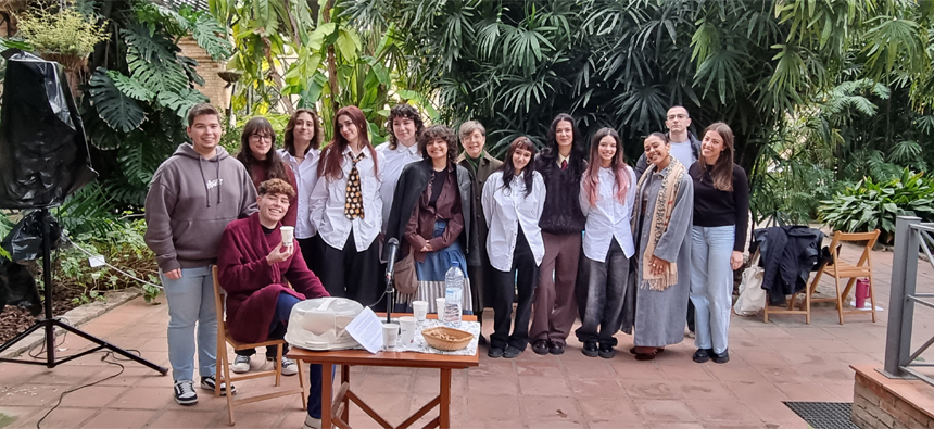 In addition to the literary exhibit on place-based memories and oral histories curated by Prof. Anna Brígido and featuring creative work by third- and fourth‑year students in the Degree of English Studies (an exhibit that can still be visited in the 1st floor hall until December 20th), the grand finale included two climate change plays staged by a group of energetic students from the Degree of English Studies. Their months of effort were not in vain, as they offered two moving performances, that directly addressed the packed audience at Jardí Botànic. We are incredibly proud of them and delighted to see the enthusiasm with which they embraced the project.